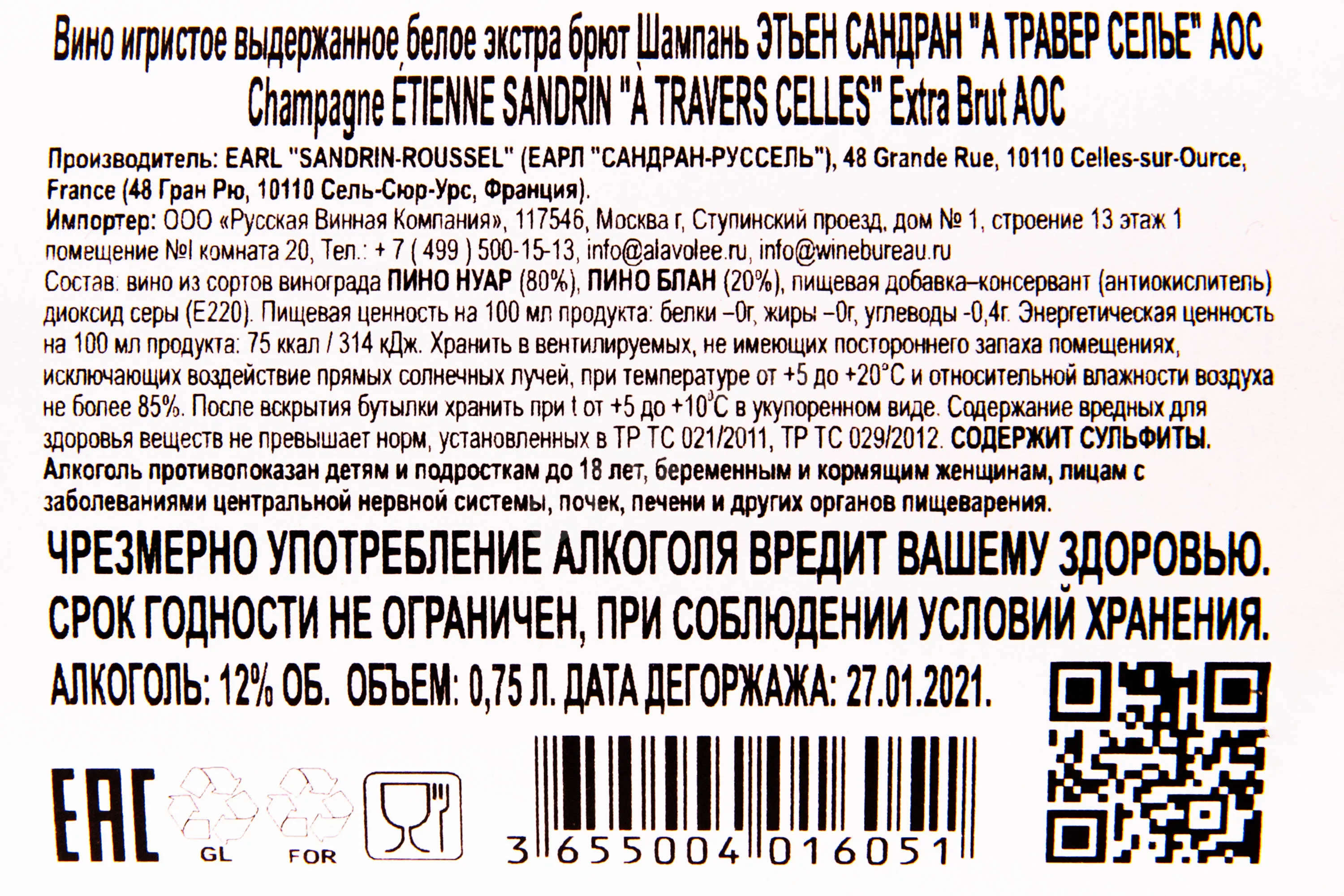 Шампанское Etienne Sandrin A Travers Celles 0.75 л