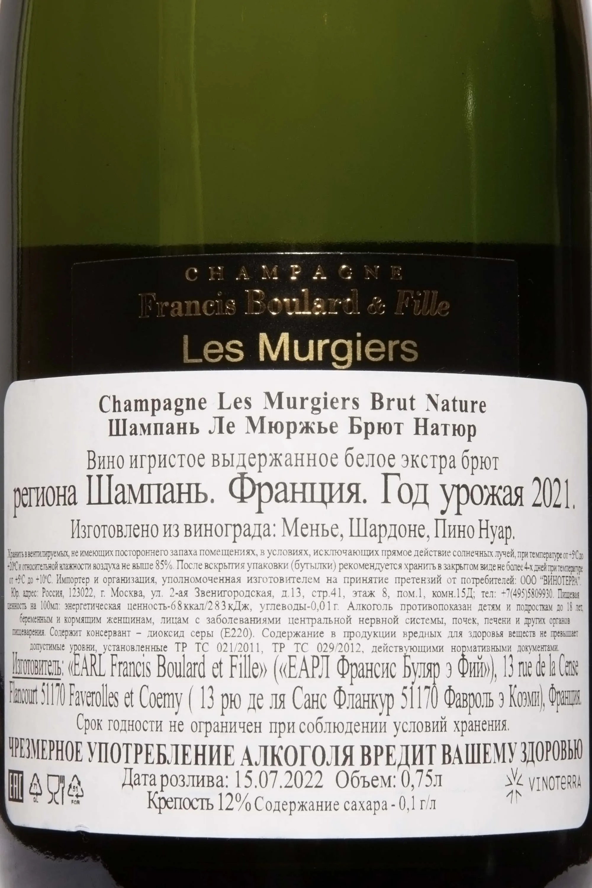 Francis Boulard & Fille Les Murgiers 2021 0.75 л купить - Шампанское Франсис Буляр э Фий Ле Мюржье цена в магазине КРЮ ПРОФИ г. Москва, ул. Профсоюзная, д. 16/10 10:00-22:00 Ежедневно +7 (495) 920-20-02 info@cru.ru
