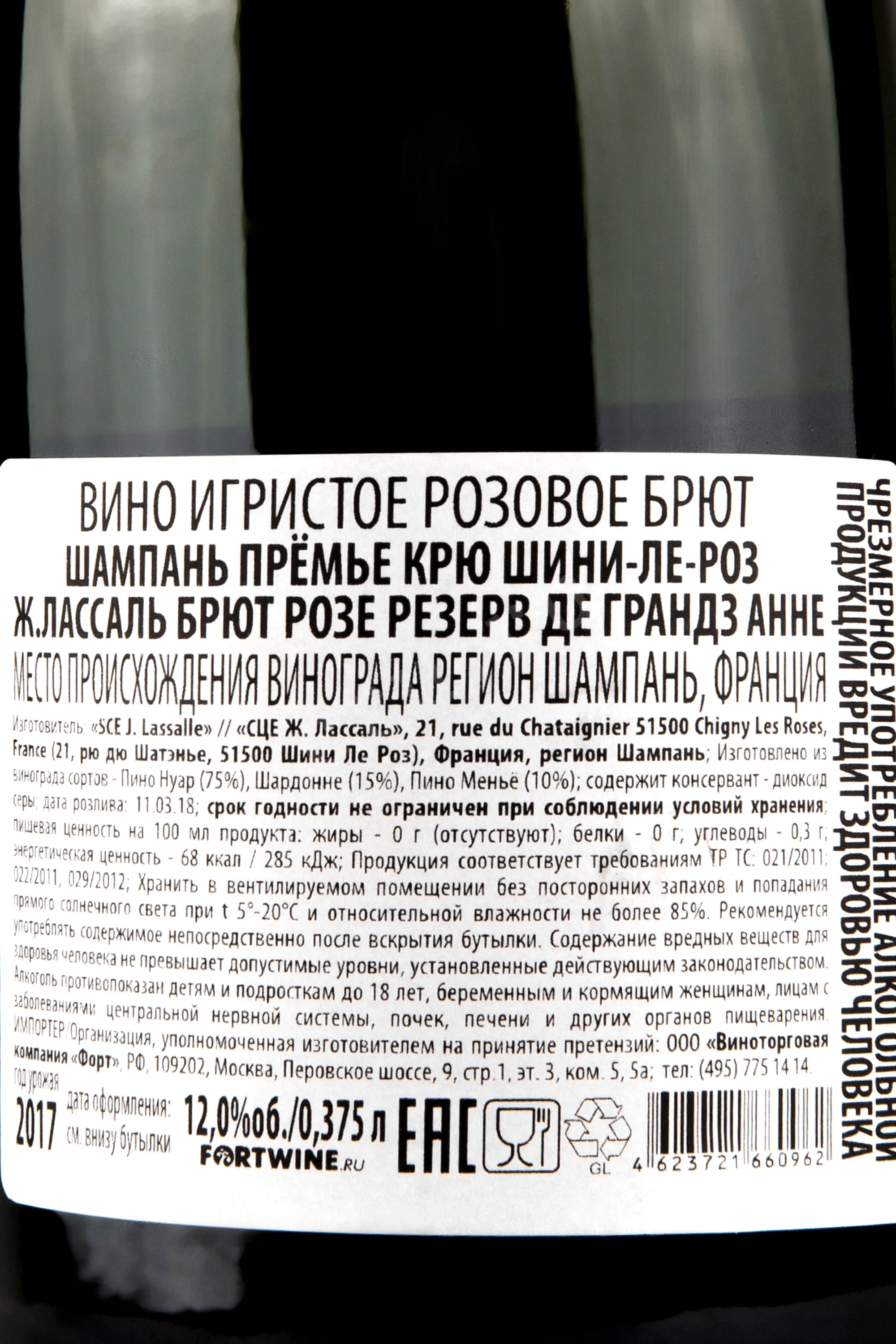 Ж. Лассаль Брют Розе Резерв де Гранд Анне Премье Крю Шини-Ле-Роз 2017 0.375