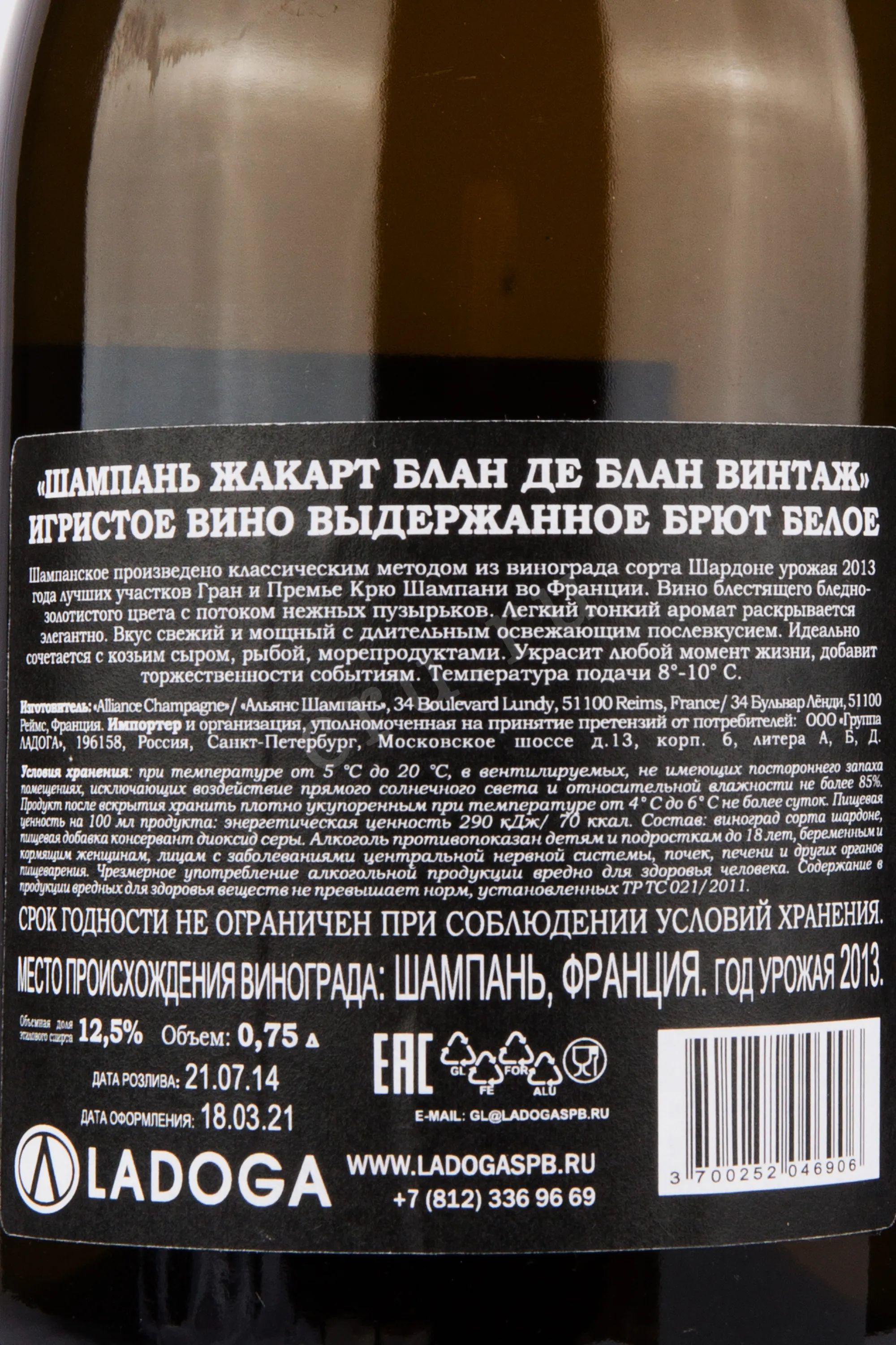 Жакарт Блан де Блан Винтаж в подарочнйо упаковке 2013 0.75