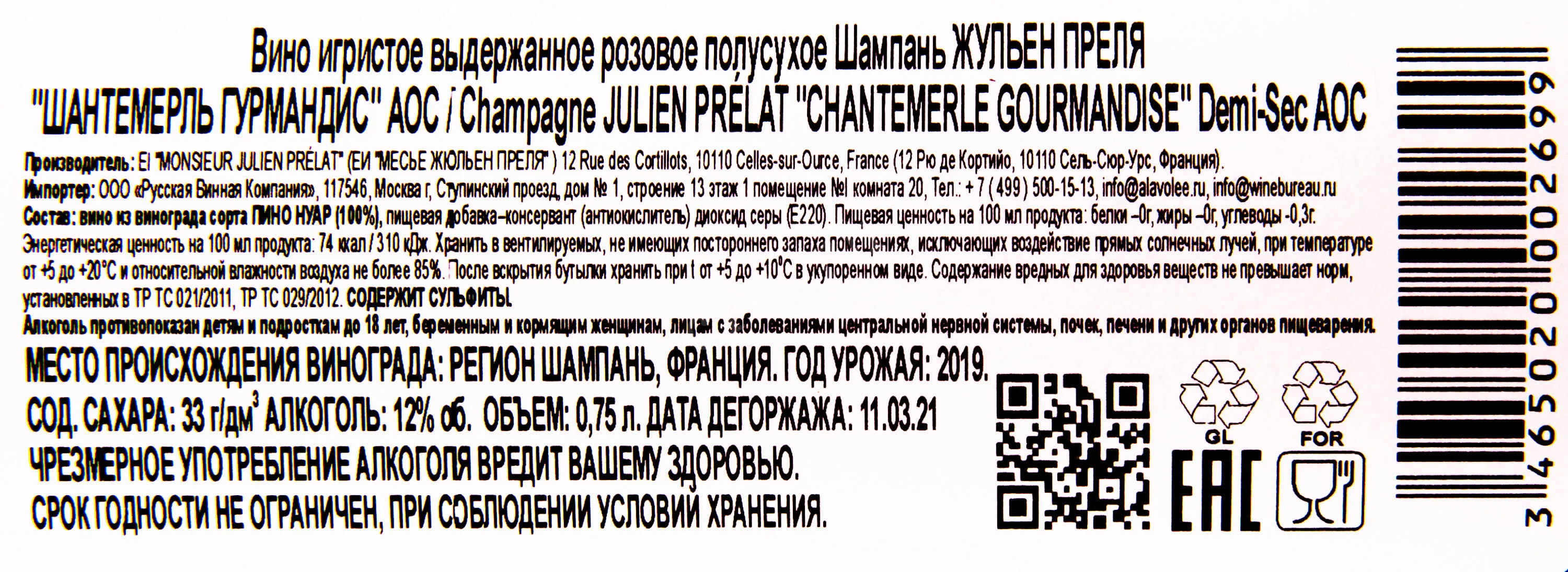 Julien Prelat Chantemerle Gourmandise AOC Rose Demi-Sec 0.75 л купить - шампанское Жульен Преля Шантемерль Гурмандис АОС Розе Полусухое цена в магазине КРЮ ПРОФИ г. Москва, ул. Профсоюзная, д. 16/10 10:00-22:00 Ежедневно +7 (495) 920-20-02 info@cru.ru