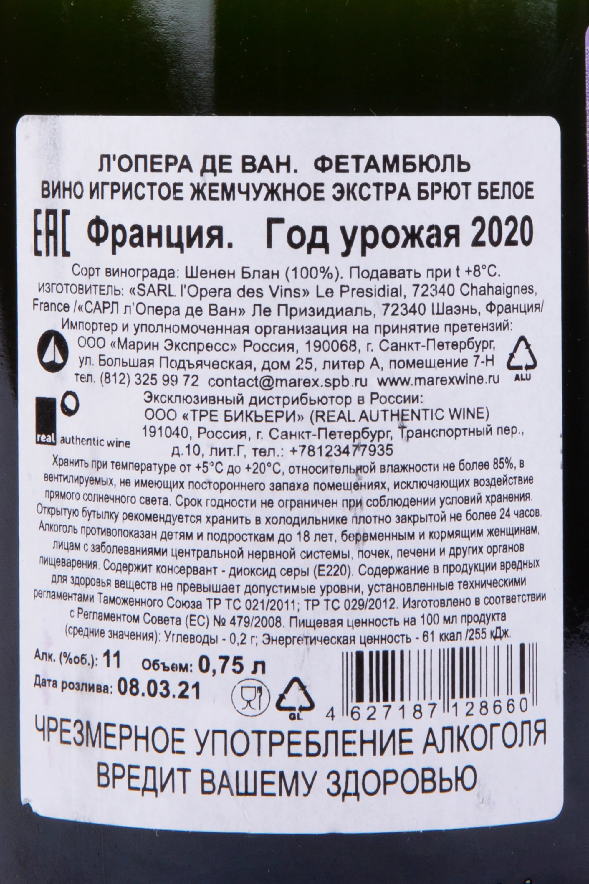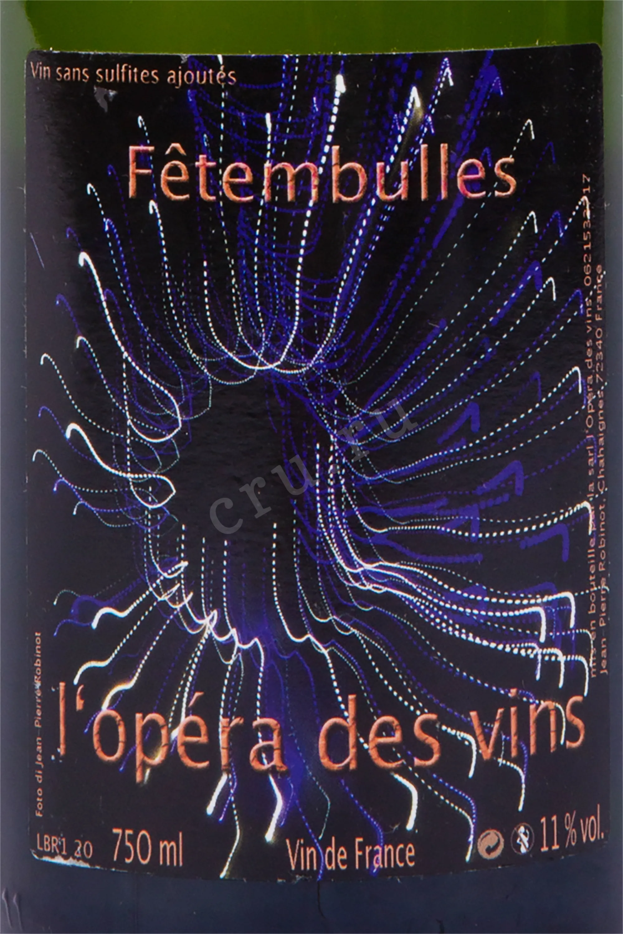 L'Opera des Vins Fetembulles 0.75 л купить - игристое вино Л`Опера де Ван Фетамбюль цена в магазине КРЮ ПРОФИ г. Москва, ул. Профсоюзная, д. 16/10 10:00-22:00 Ежедневно +7 (495) 920-20-02 info@cru.ru