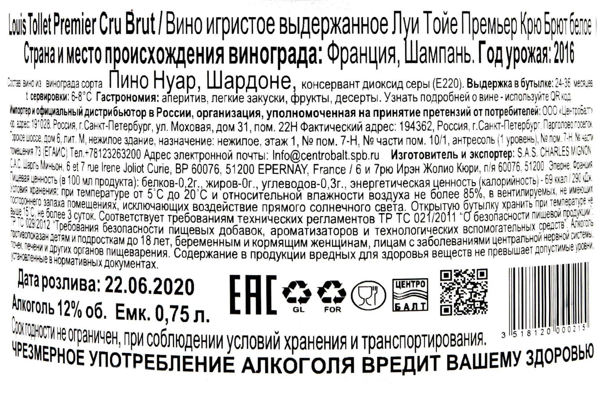 Louis Tollet Premier Cru Brut 2021 0.75 л купить - шампанское Луи Тойе Премьер Крю Брют цена в магазине КРЮ ПРОФИ г. Москва, ул. Профсоюзная, д. 16/10 10:00-22:00 Ежедневно +7 (495) 920-20-02 info@cru.ru