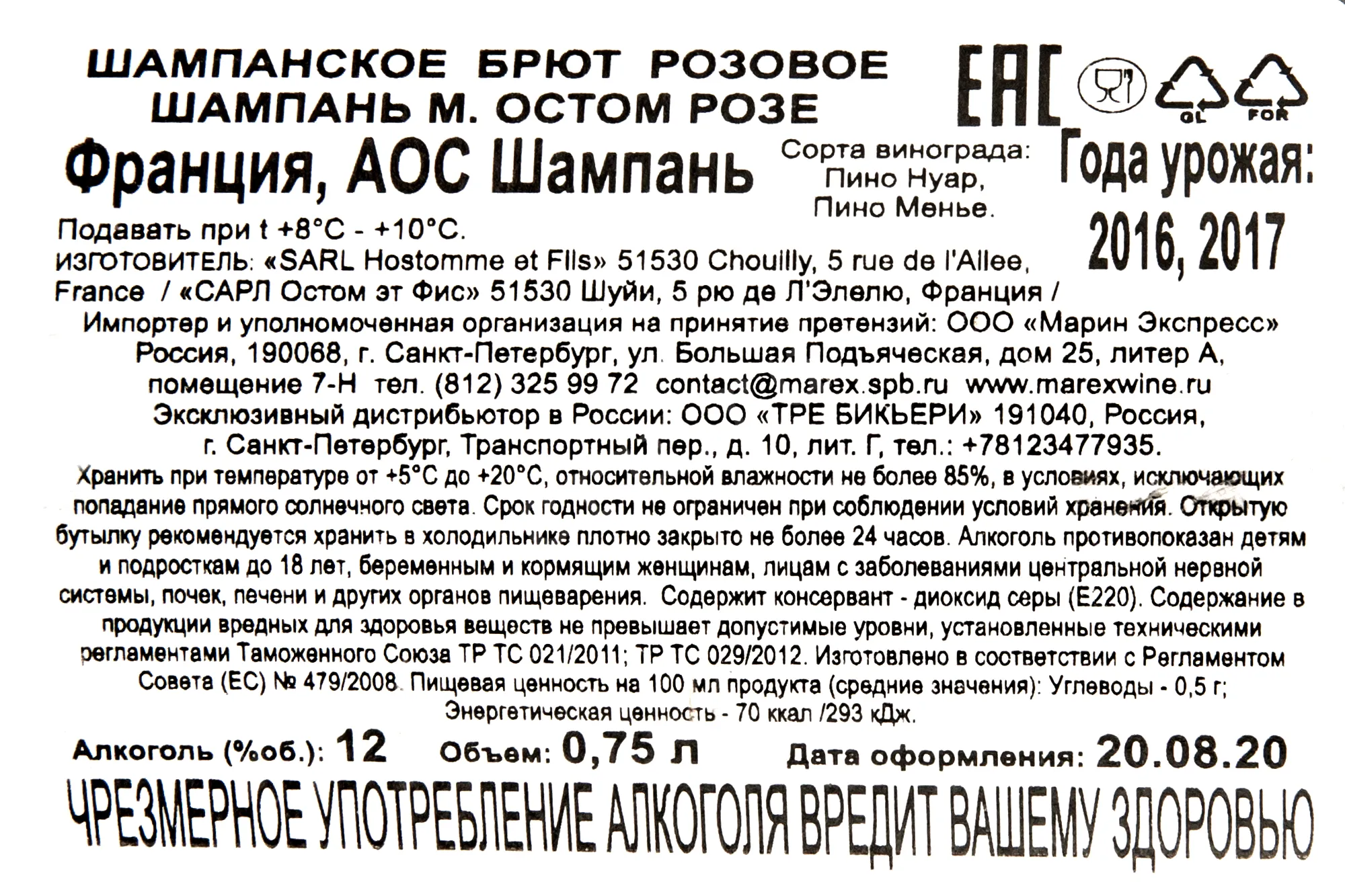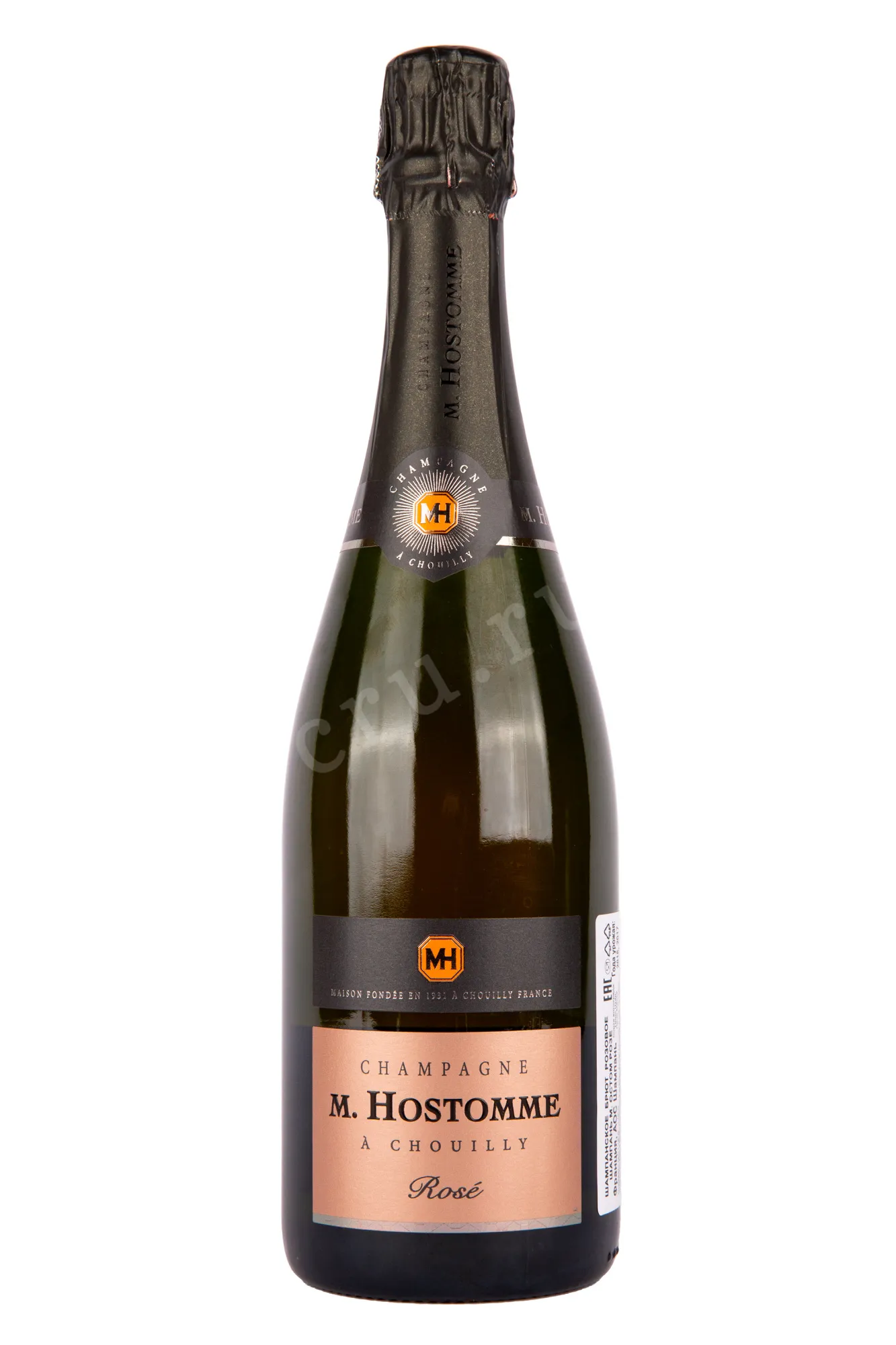 Шампанское M. Hostomme Brut Rose 0.75 l – это французский розовый алкоголь крепостью 12%, изготовленный из собранного вручную урожая 2016-17 гг. Сусло, полученное с помощью пневматического пресса, подвергают непродолжительной мацерации на кожице и ферментации в чанах из нержавеющей стали объемом 25 гл с натуральными дрожжевыми культурами. Каждые шесть недель вино сливается с осадка в новый резервуар. Затем происходит купажирование и выдержка брютового шампанского в течение минимум 2-х лет.