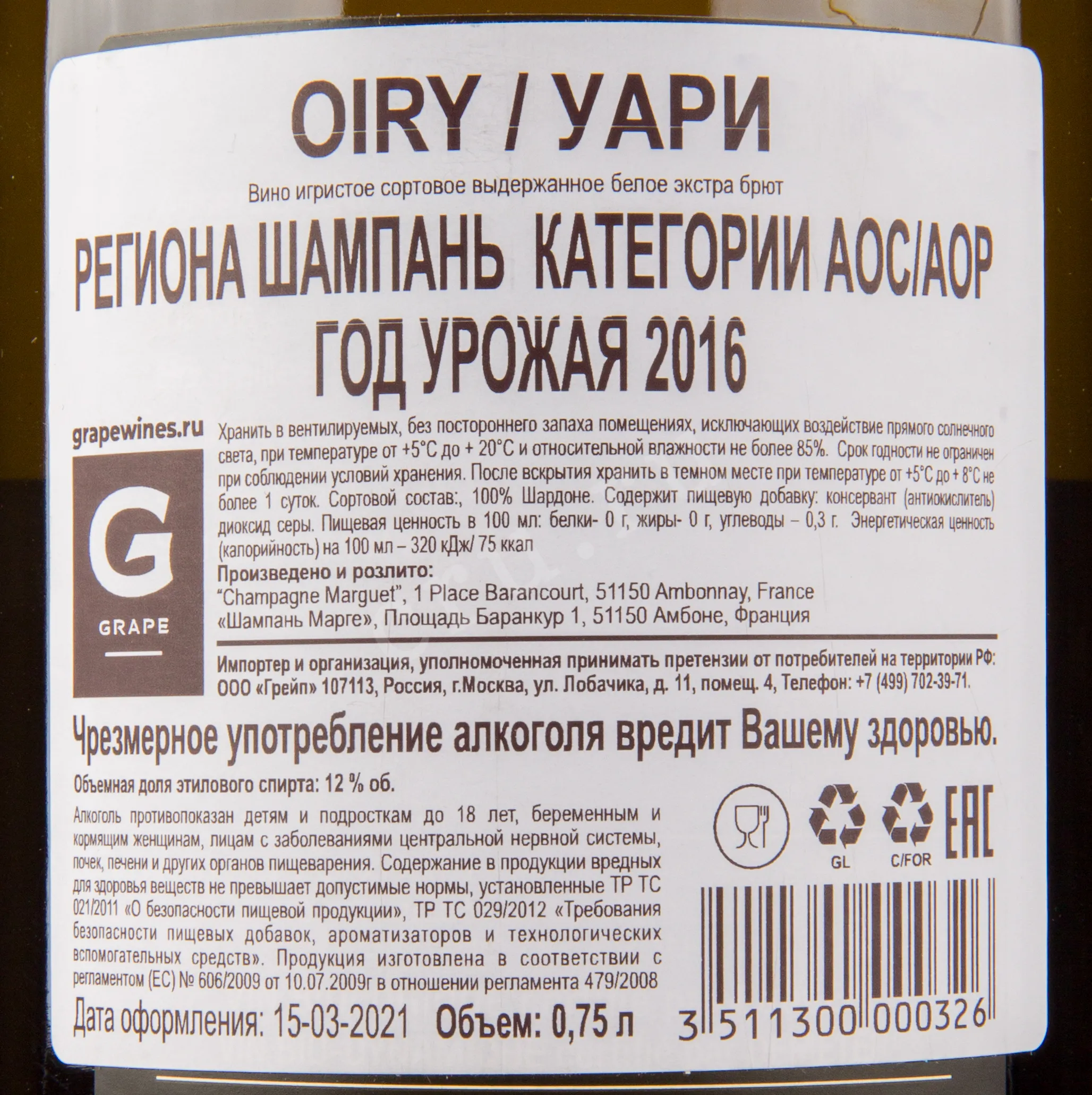 Marguet Oiry Extra Brut 0.75 л купить - шампанское Марге Уари цена в магазине КРЮ ПРОФИ г. Москва, ул. Профсоюзная, д. 16/10 10:00-22:00 Ежедневно +7 (495) 920-20-02 info@cru.ru