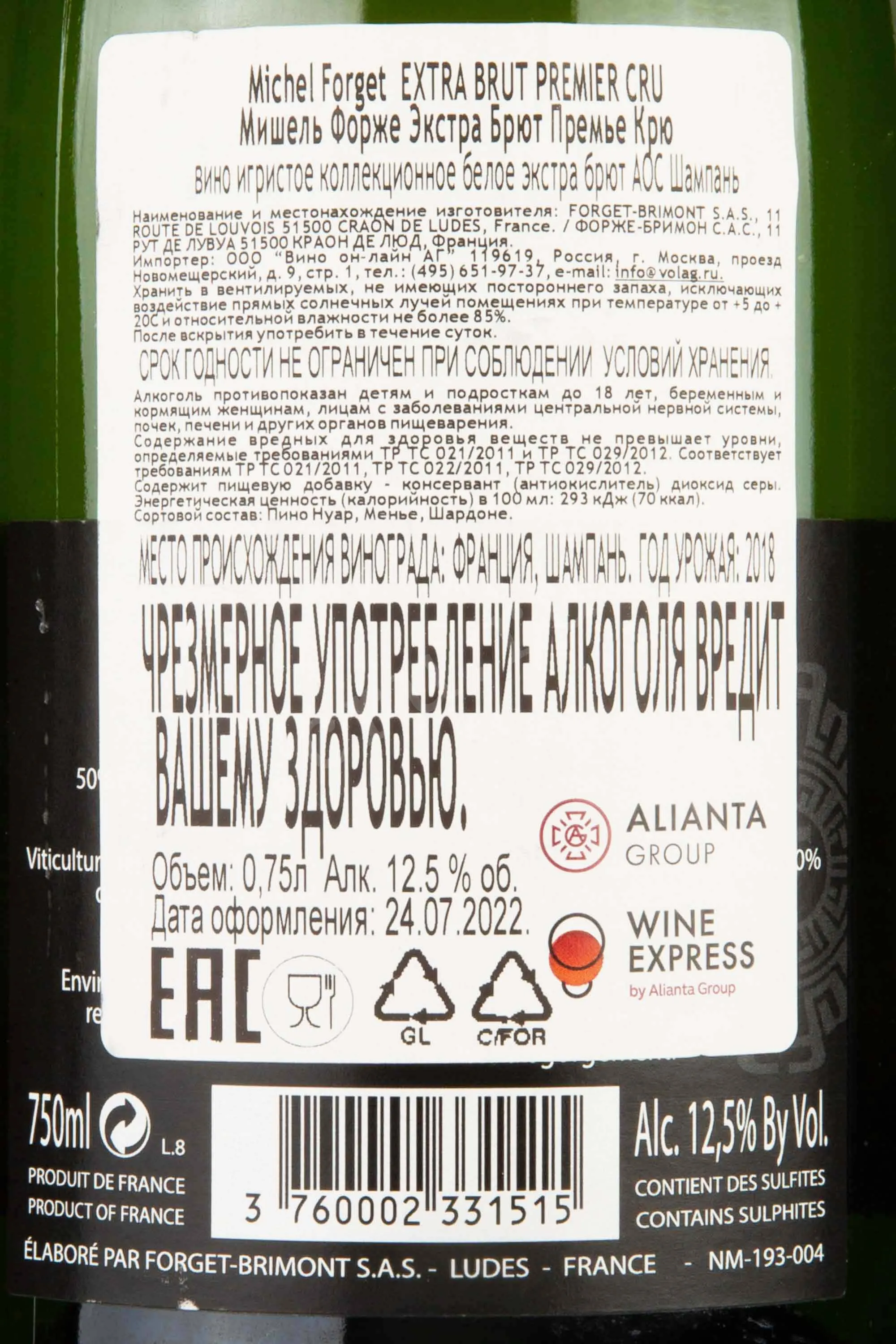 Michel Forget Extra Brut Premier Cru 2018 0.75 л купить — шампанское Мишель Форже Экстра Брют Премье Крю цена в магазине КРЮ ПРОФИ г. Москва, ул. Профсоюзная, д. 16/10 10:00-22:00 Ежедневно +7 (495) 920-20-02 info@cru.ru