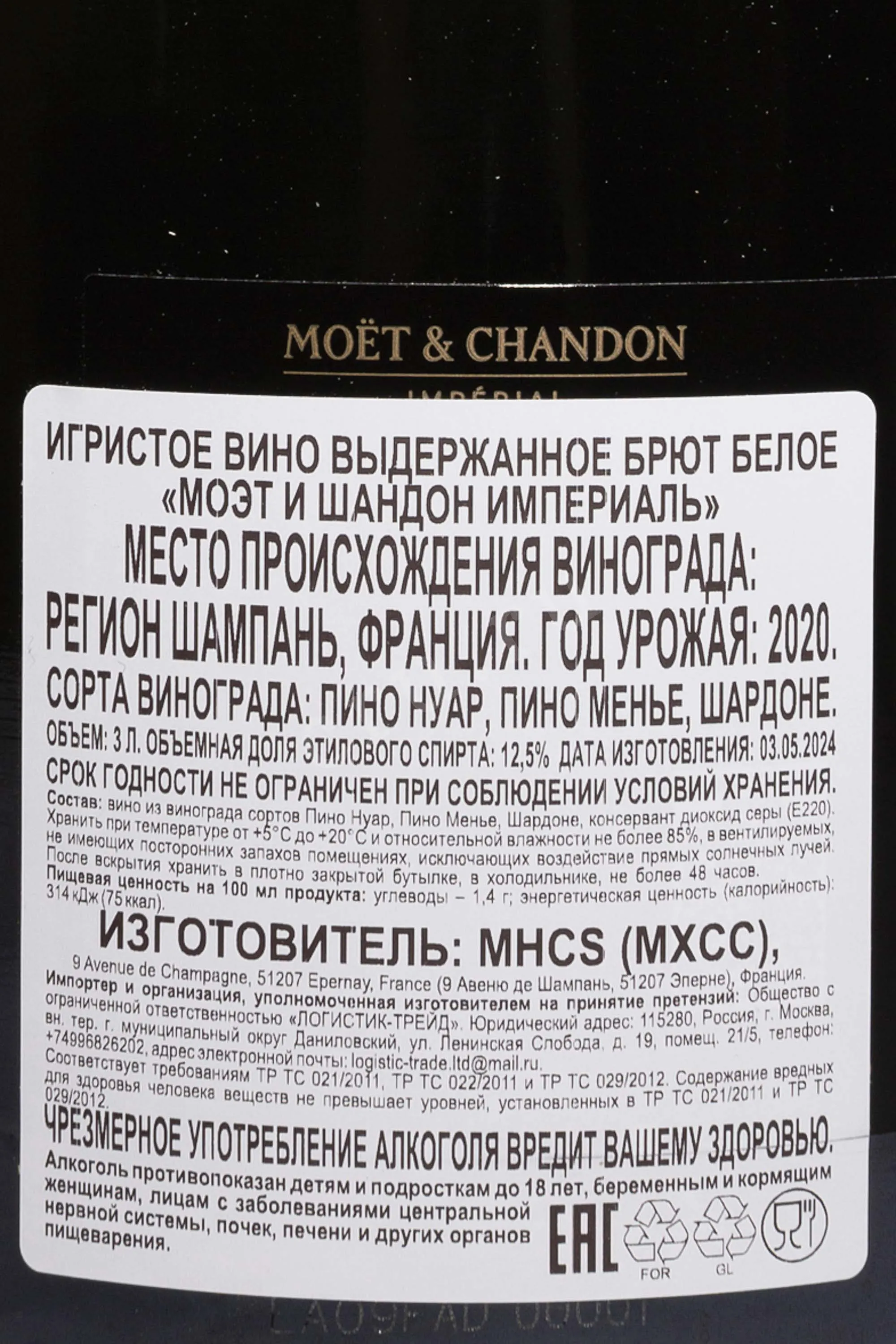 Шампанское Moet & Chandon Imperial Brut gift box 2020 3 л отражает суть французского искусства создания изысканных игристых напитков. Его изготавливают в сердце региона Шампань, где меловые почвы и прохладный климат формируют уникальный характер ягод. Производство основано на классическом методе вторичного брожения в бутылке, что обеспечивает тонкий перляж и продолжительное созревание на осадке. Дом Moët & Chandon использует только строго отобранные урожаи с виноградников, расположенных на холмах с идеальной экспозицией к солнцу. Год 2020 отличался мягкой зимой и жарким летом, позволив получить ягоды с гармоничным балансом кислотности и сахара. Напиток воплощает элегантность, глубину и яркое отражение терруара, где каждая деталь подчинена идее совершенства.