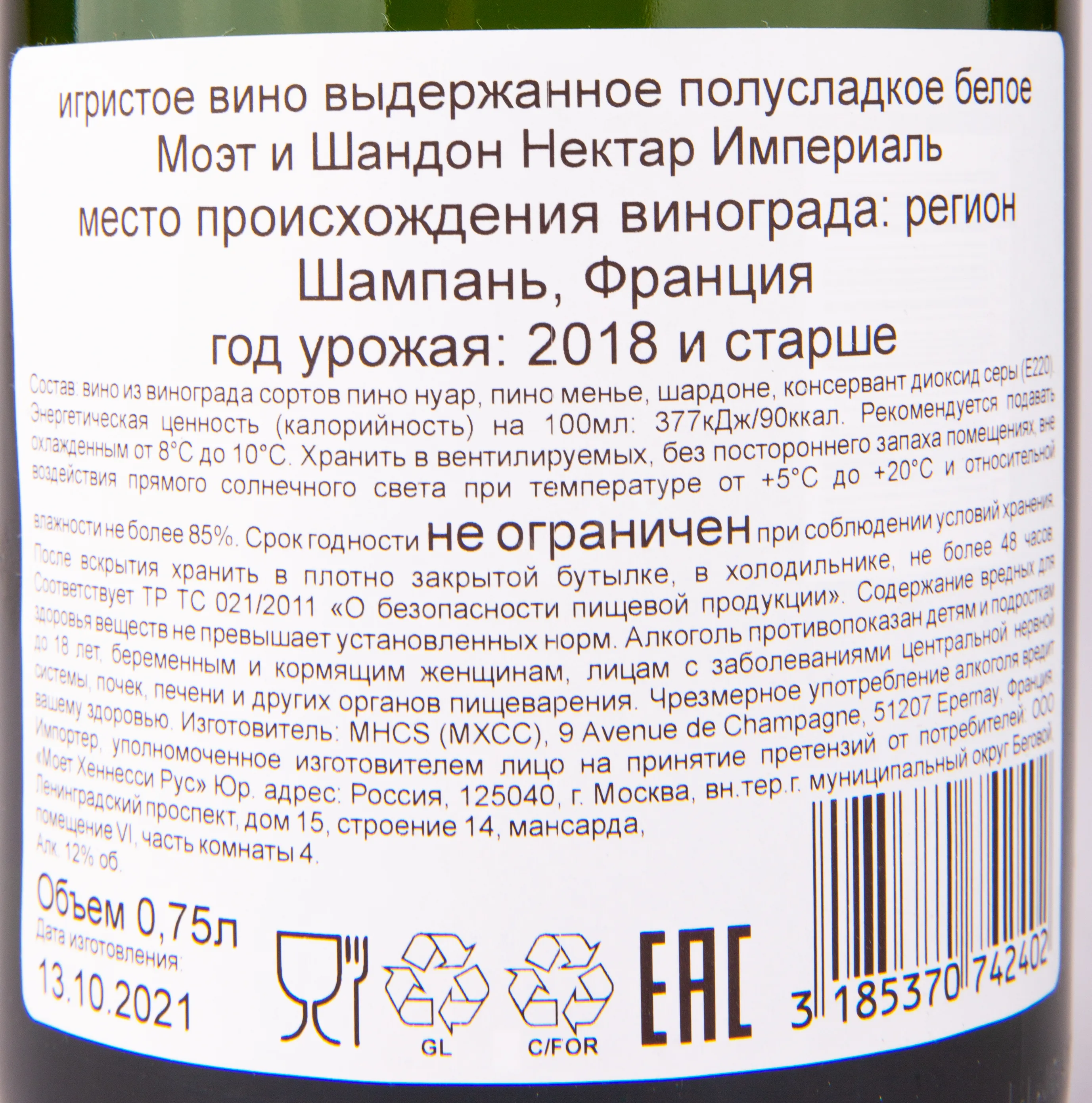 Moet & Chandon Nectar Imperial 2019 0.75 л купить - шампанское Моет Шандон Нектар Империал цена в магазине КРЮ ПРОФИ г. Москва, ул. Профсоюзная, д. 16/10 10:00-22:00 Ежедневно +7 (495) 920-20-02 info@cru.ru