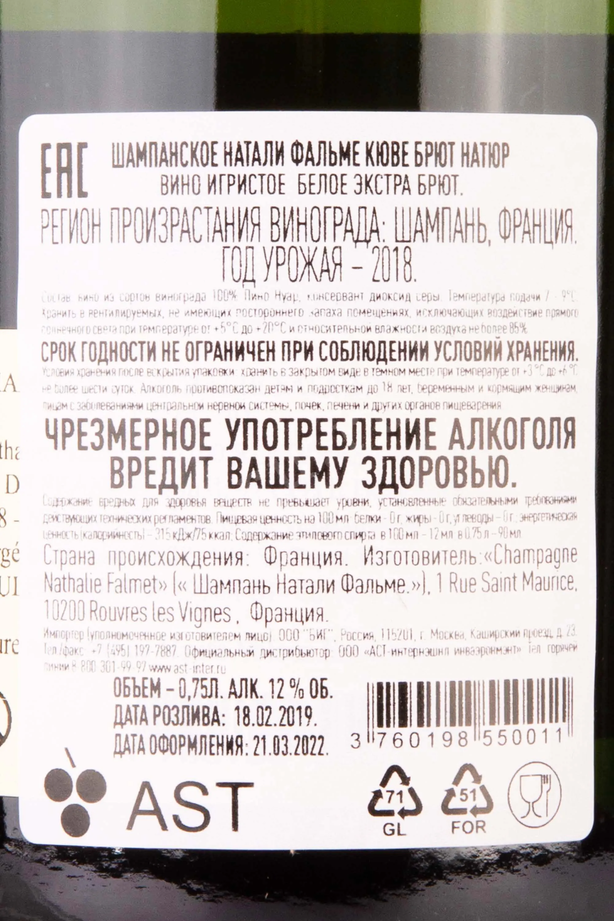 Nathalie Falmet Cuvée Brut Nature 0.75 л купить - шампанское Натали Фальме Кюве Брют Натюр цена в магазине КРЮ ПРОФИ г. Москва, ул. Профсоюзная, д. 16/10 10:00-22:00 Ежедневно +7 (495) 920-20-02 info@cru.ru