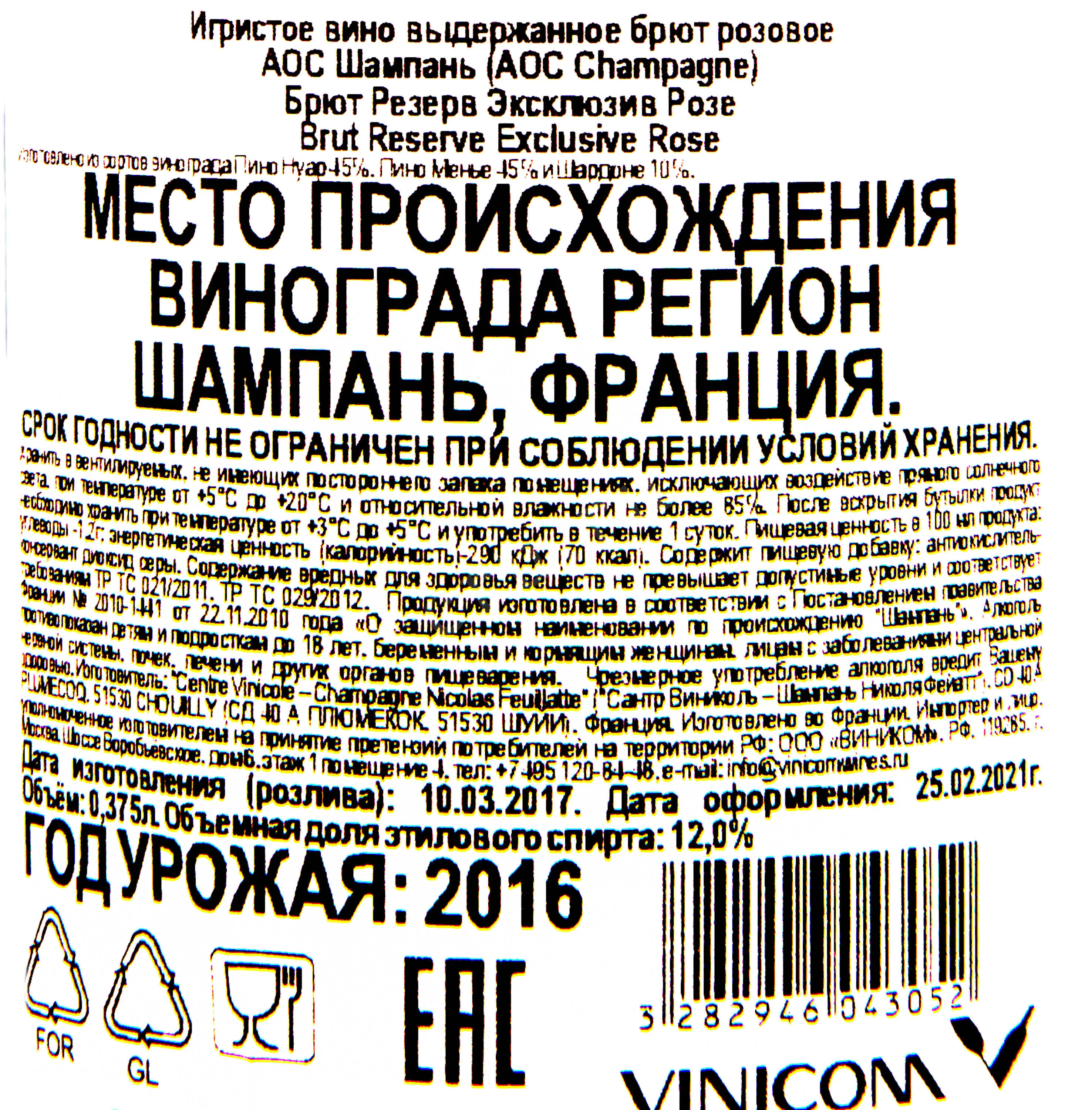 Шампанское Nicolas Feuillatte Reserve Exclusive Rose 2019 0.375 л