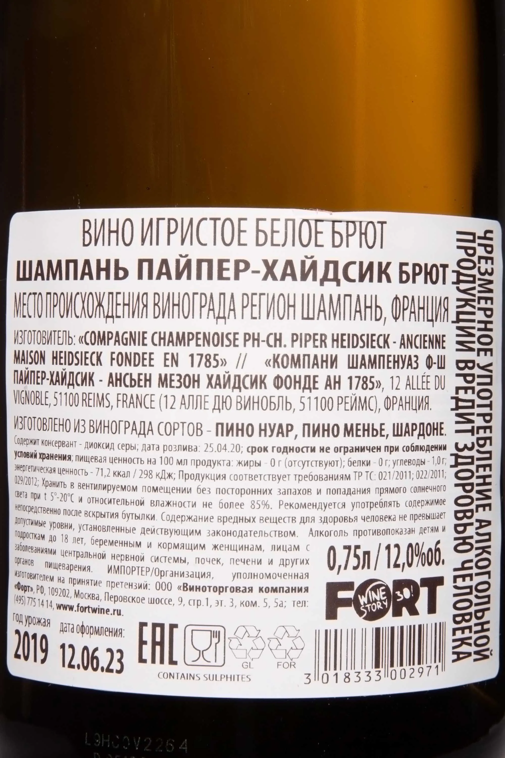 Изготовитель: Компани Шампенауз Ф-Ш Пайпер Хайдсик Ансьен Мезон Хайдсик Фонд