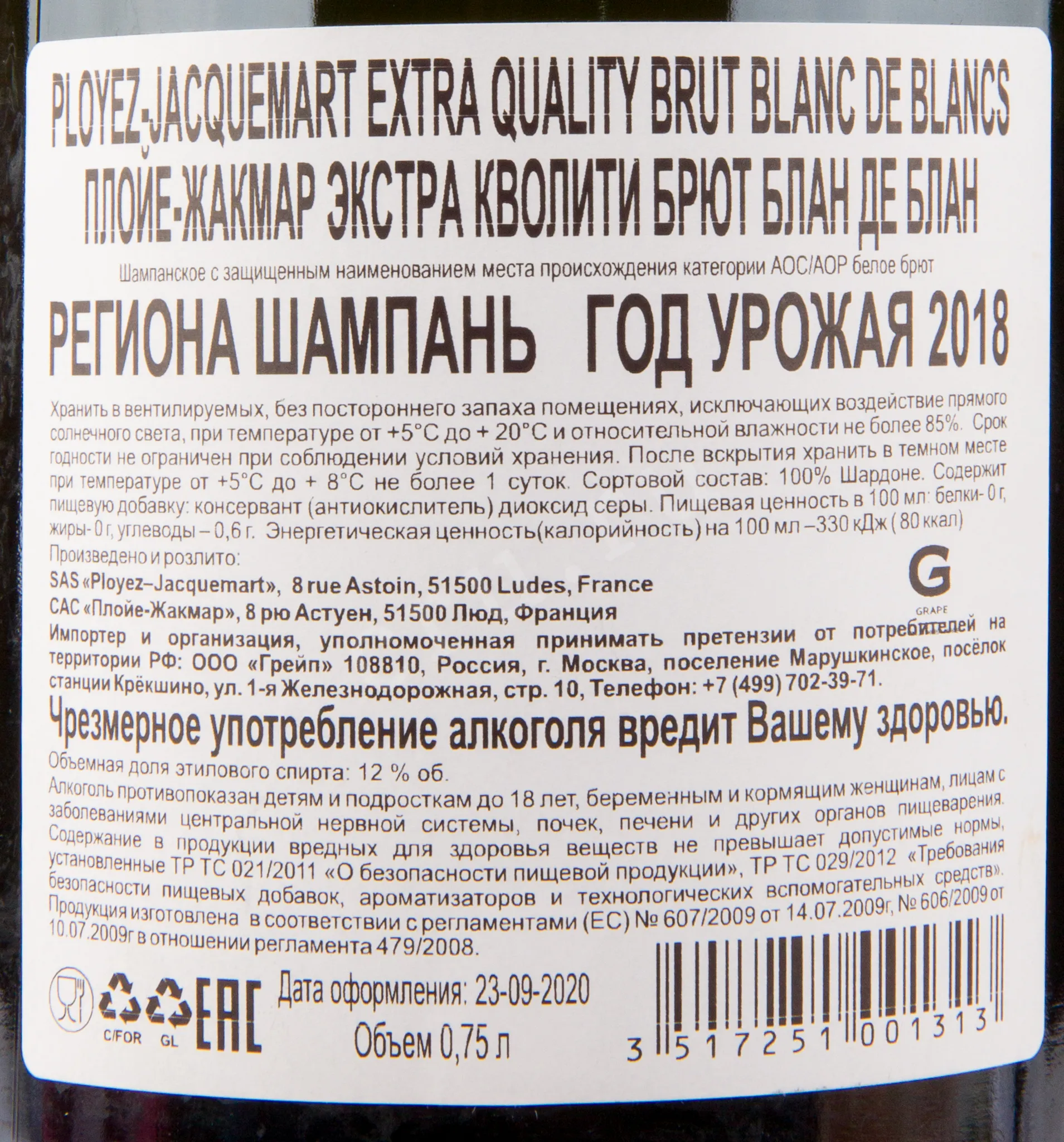 Ployez-Jacquemart Extra Quality Brut Blanc de Blancs 0.75 л купить - шампанское Плойе-Жакмар Экстра Кволити Брют Блан де Блан цена в магазине КРЮ ПРОФИ г. Москва, ул. Профсоюзная, д. 16/10 10:00-22:00 Ежедневно +7 (495) 920-20-02 info@cru.ru