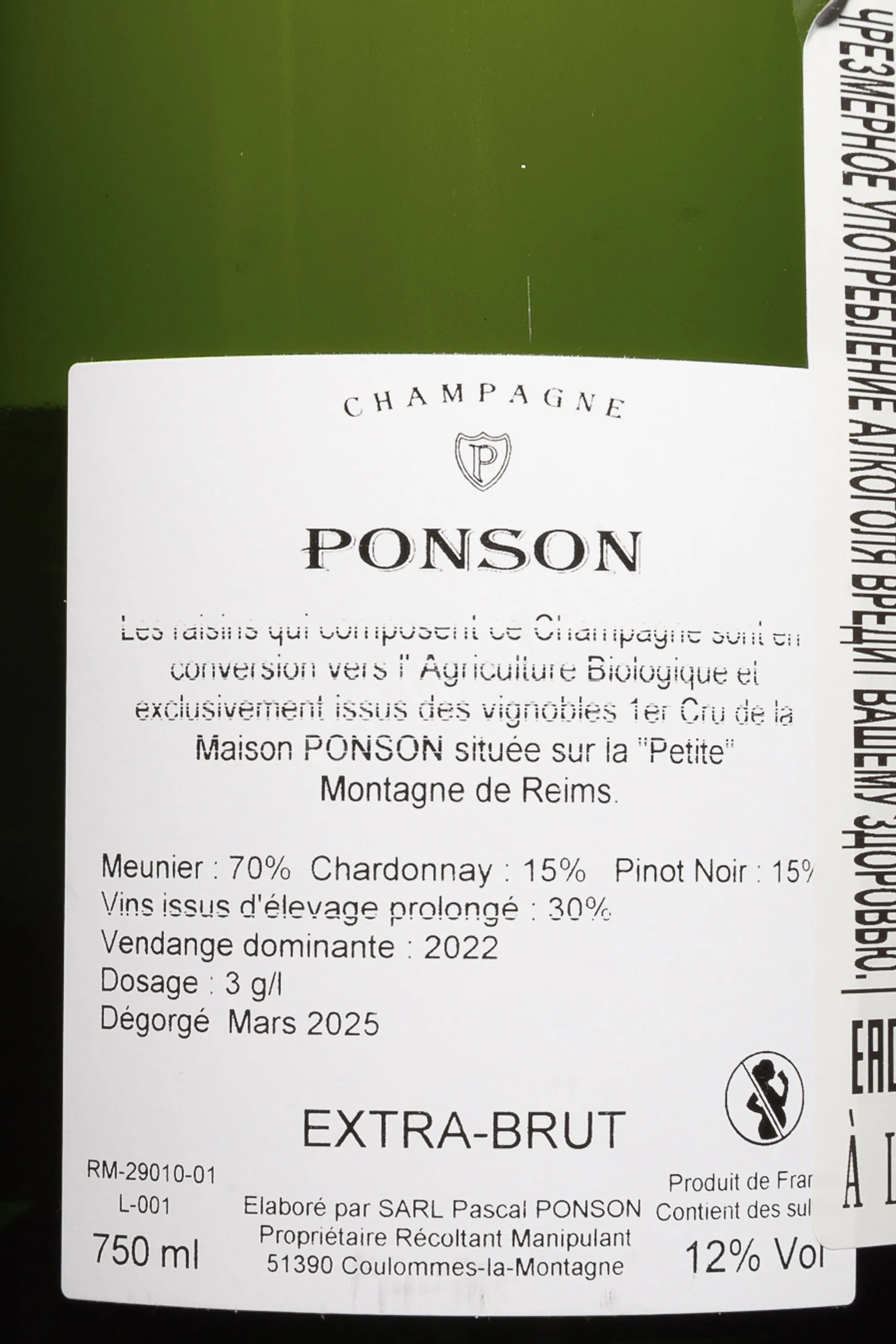 Шампанское белое экстра-брют Ponson Premier Cru 2022 г. 0,75 л создано в Монтань-де-Реймс, где хозяйство Понсон работает с участками, поднятыми на известняковых склонах. Виноград собирают вручную и прессуют мягким способом, чтобы сохранить естественную кислотность. Брожение проходит частично в резервуарах, частично в старых бочках. Длительная выдержка на осадке после вторичной ферментации в бутылках по классической технологии формирует тонкую текстуру. Это прекрасный терруарный образец, яркий характер которого подчеркивает минимальная дозировка сахара.
