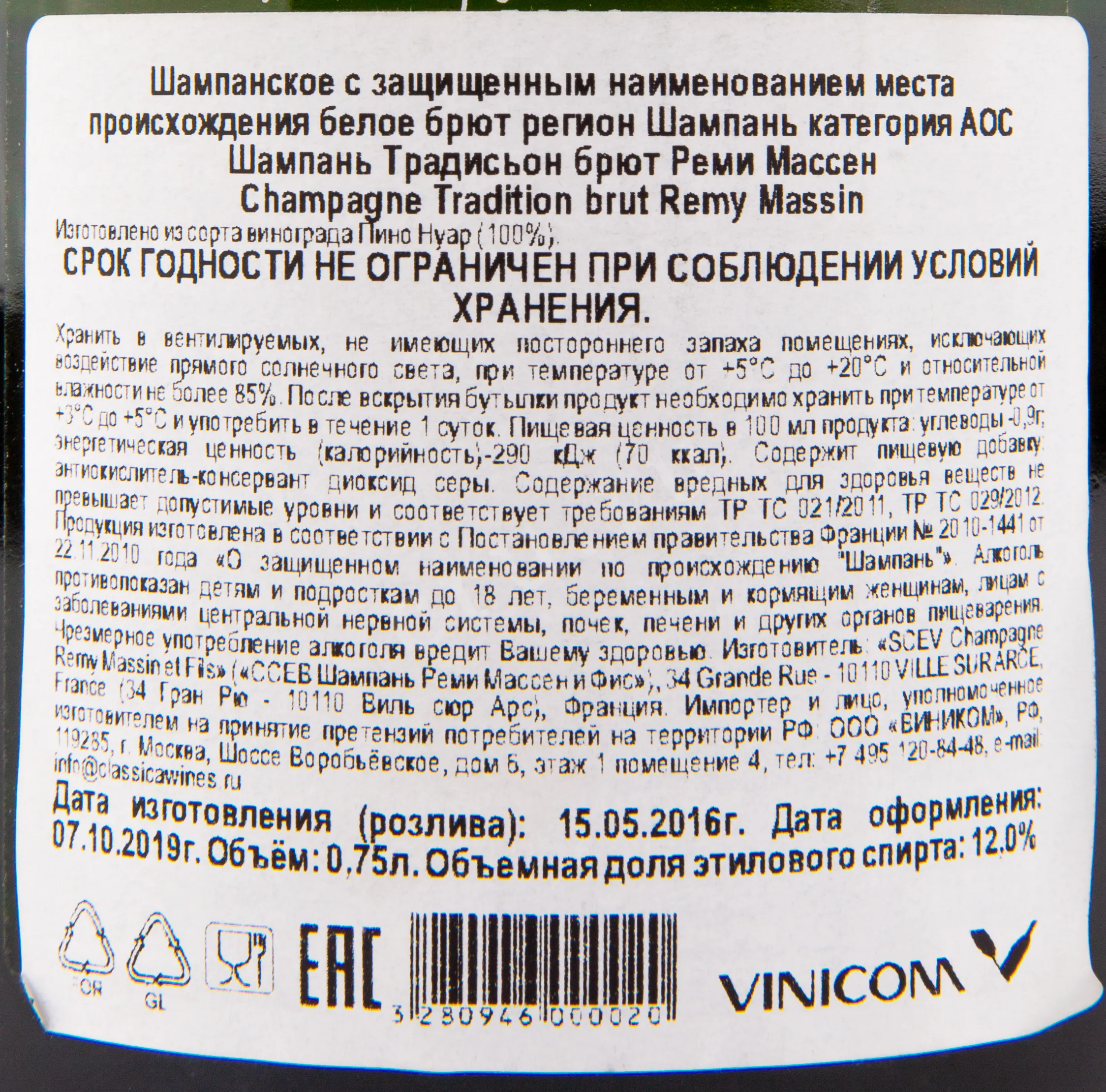 Remy Massin Tradition Brut 0.75 л купить - шампанское Традисьон брют Реми Массе цена в магазине КРЮ ПРОФИ г. Москва, ул. Профсоюзная, д. 16/10 10:00-22:00 Ежедневно +7 (495) 920-20-02 info@cru.ru