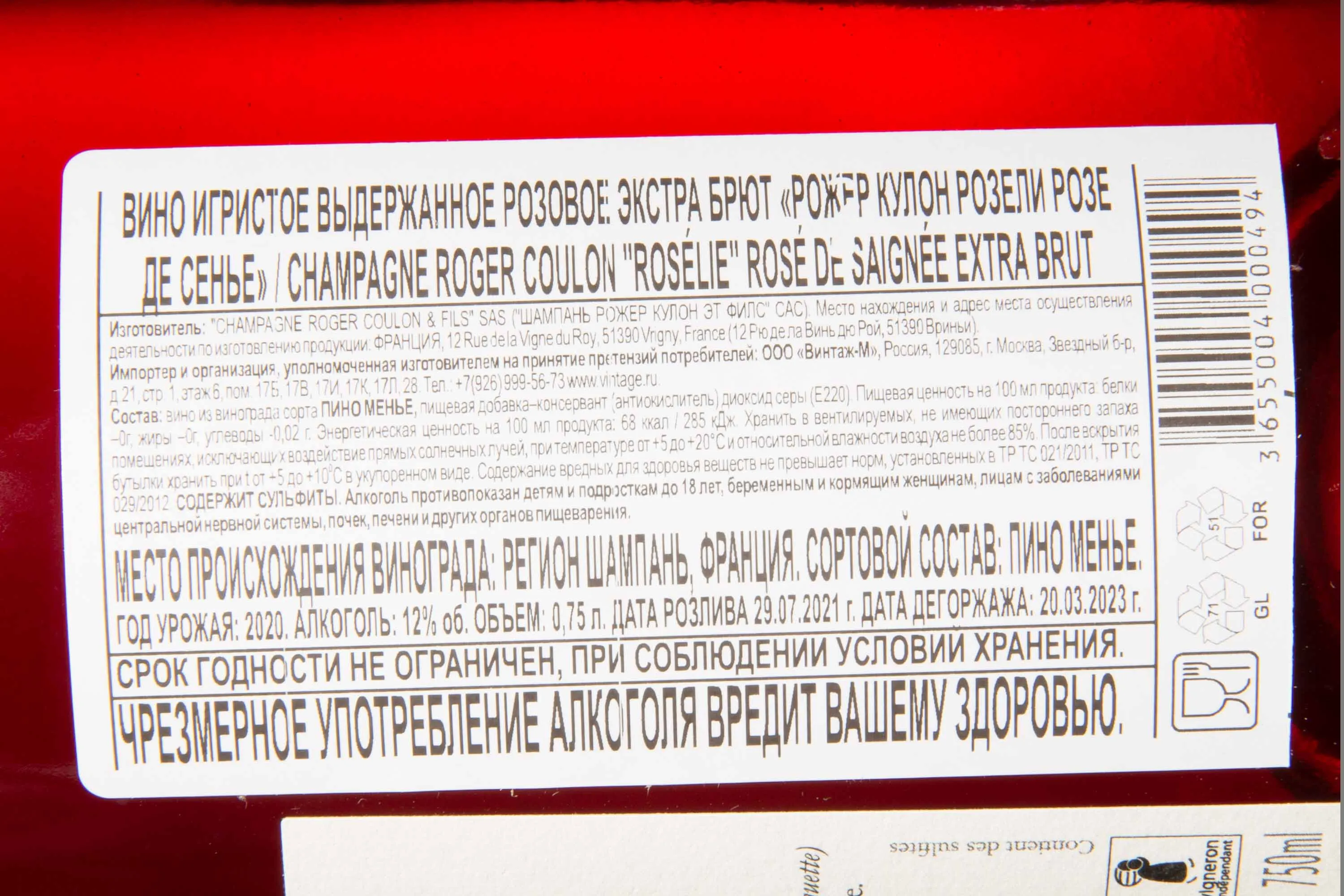 Roger Coulon Roselie Rose de Saignee 2020 0.75 л купить - шампанское Роджер Кулон Розели Розе де Сенье цена в магазине КРЮ ПРОФИг. Москва, ул. Профсоюзная, д. 16/1010:00-22:00 Ежедневно+7 (495) 920-20-02info@cru.ru