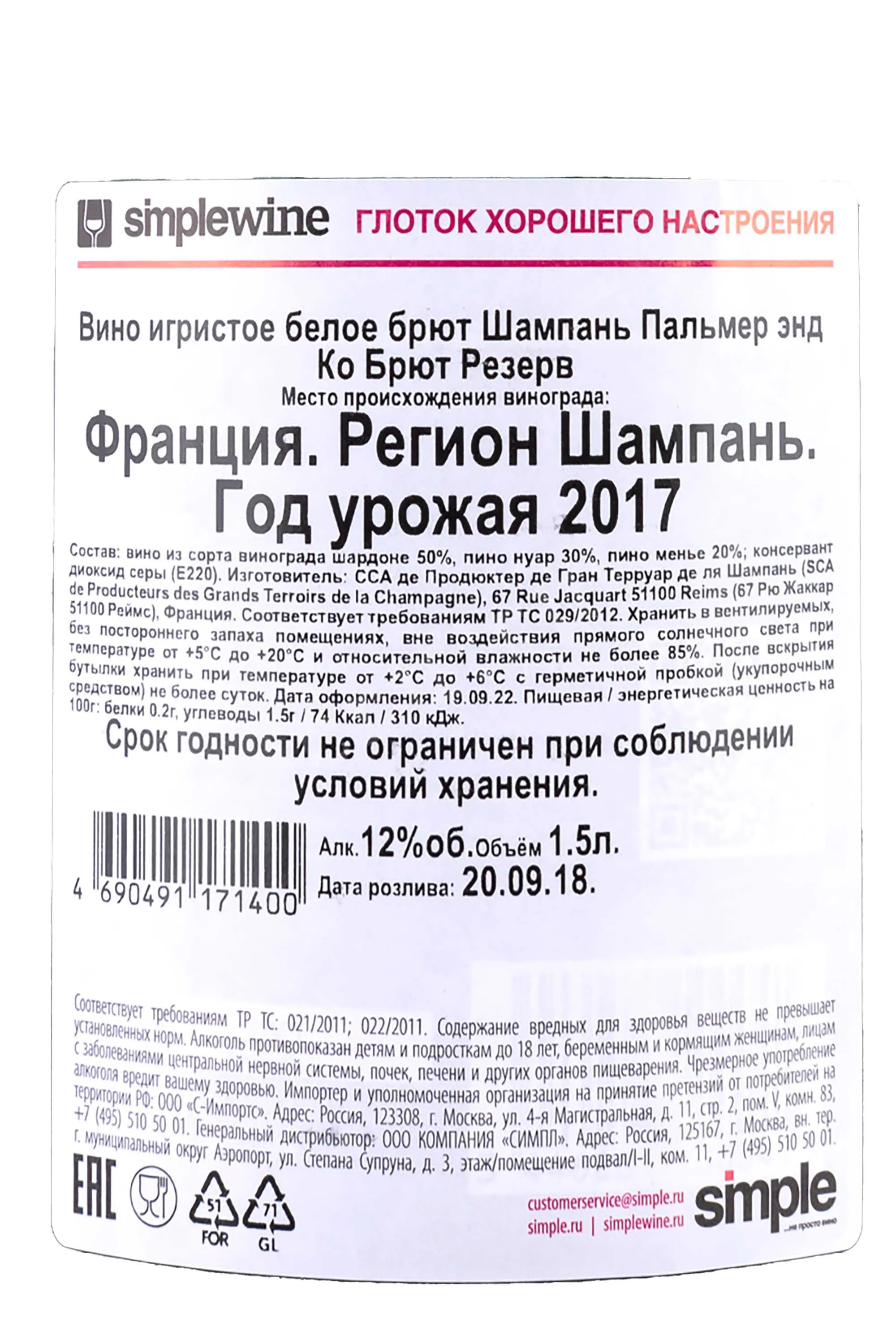 Шампань Пальмер энд Ко Брют Резерв в подарочной упаковке 2017 1.5