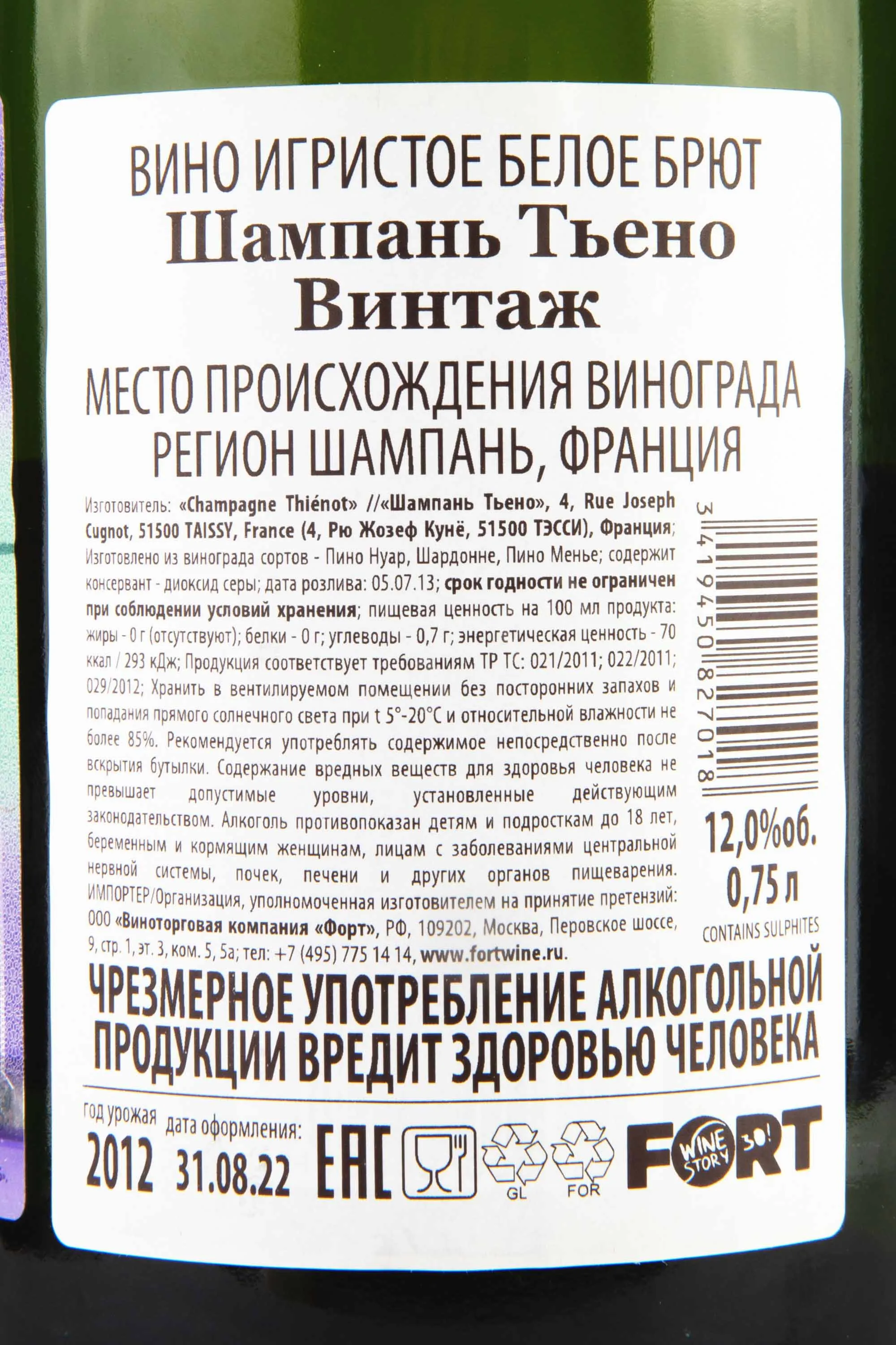 Шампанское Thienot Vintage gift box 2012 0.75 л