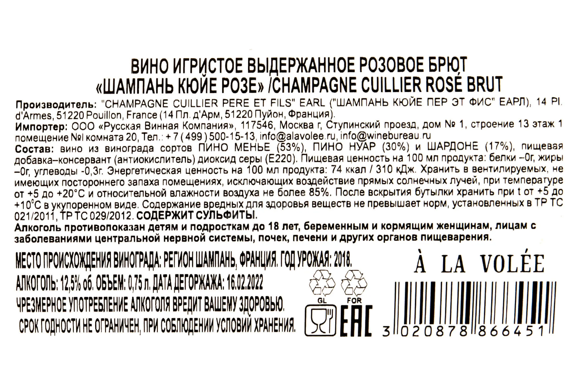 Изготовитель: "ШАМПАНЬ КЮЙЕ ПЕР ЭТ ФИС" ЕАРЛ (рвк)