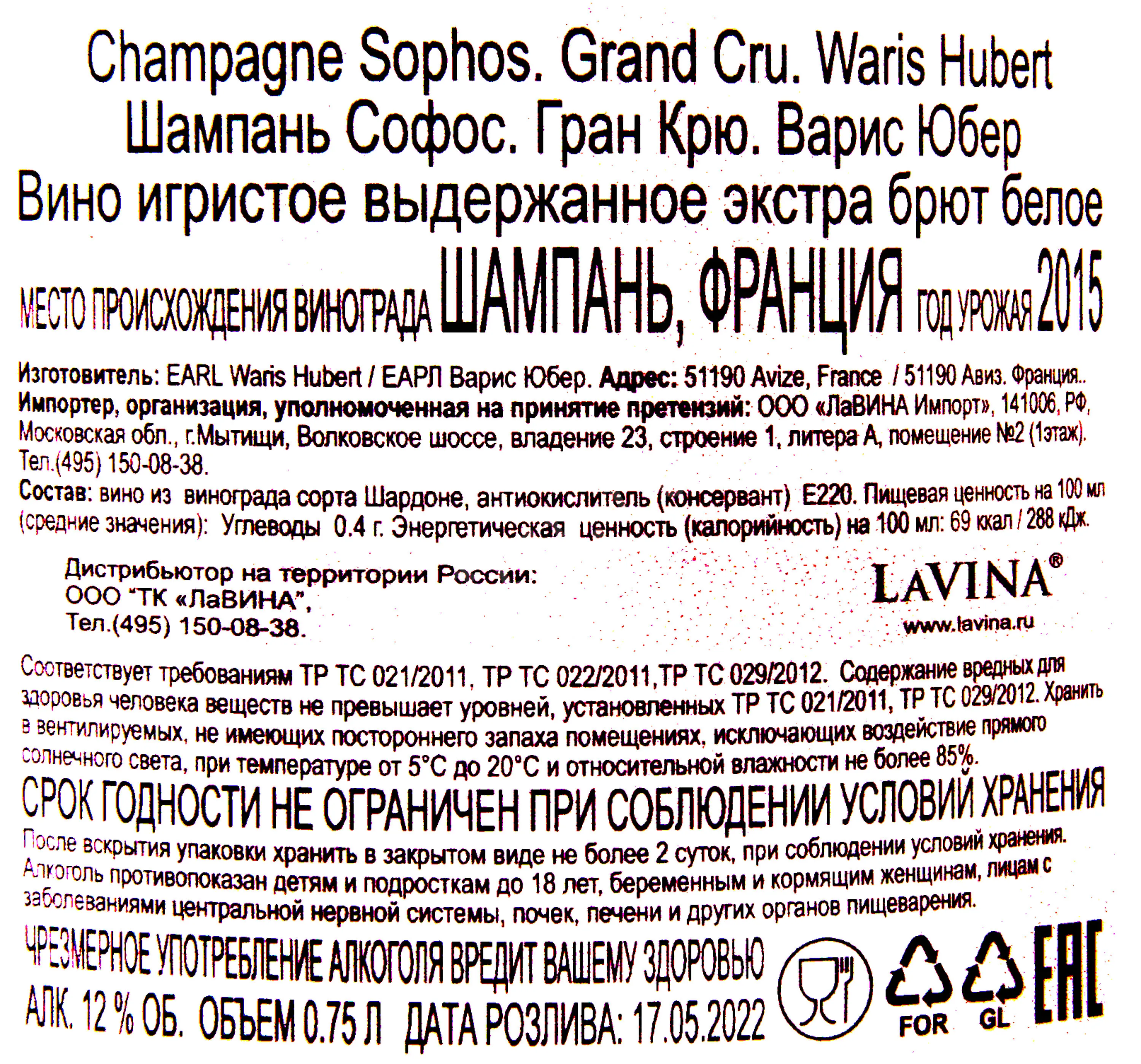 Waris Hubert Sophos Grand Cru Millesime in wooden box 2015 0.75 л купить - шампанское Софос Гран Крю Варис Юбер в деревянном ящике цена в магазине КРЮ ПРОФИ г. Москва, ул. Профсоюзная, д. 16/10 10:00-22:00 Ежедневно +7 (495) 920-20-02 info@cru.ru