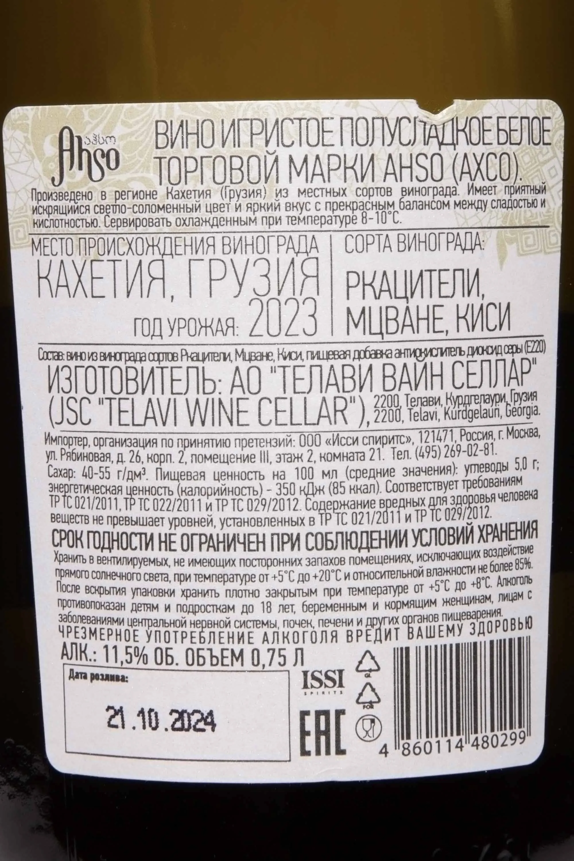 Ahso Semi-Sweet 2023 0.75 л купить - Грузинское игристое вино Ахсо Полусладкое цена в магазине КРЮ ПРОФИ г. Москва, ул. Профсоюзная, д. 16/10 10:00-22:00 Ежедневно +7 (495) 920-20-02 info@cru.ru