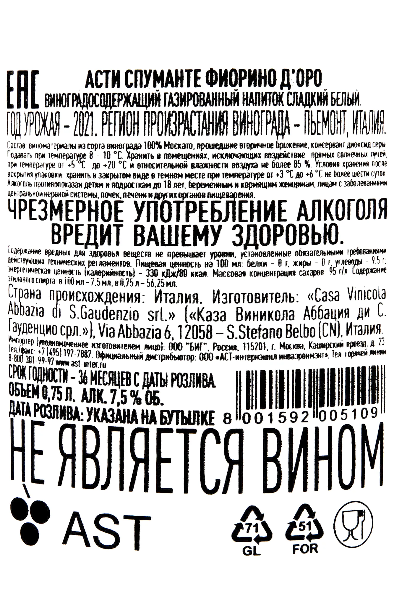 Сладкое игристое вино, производимое в регионе Пьемонт, на северо-западе Италии. Оно изготавливается из винограда Moscato Bianco (Белый Мускат), который придает вкусу нотки апельсина, персика и цветочных ароматов. Asti, также известное как Asti Spumante, является более пузырчатым и слегка более алкогольным по сравнению с Moscato d'Asti.