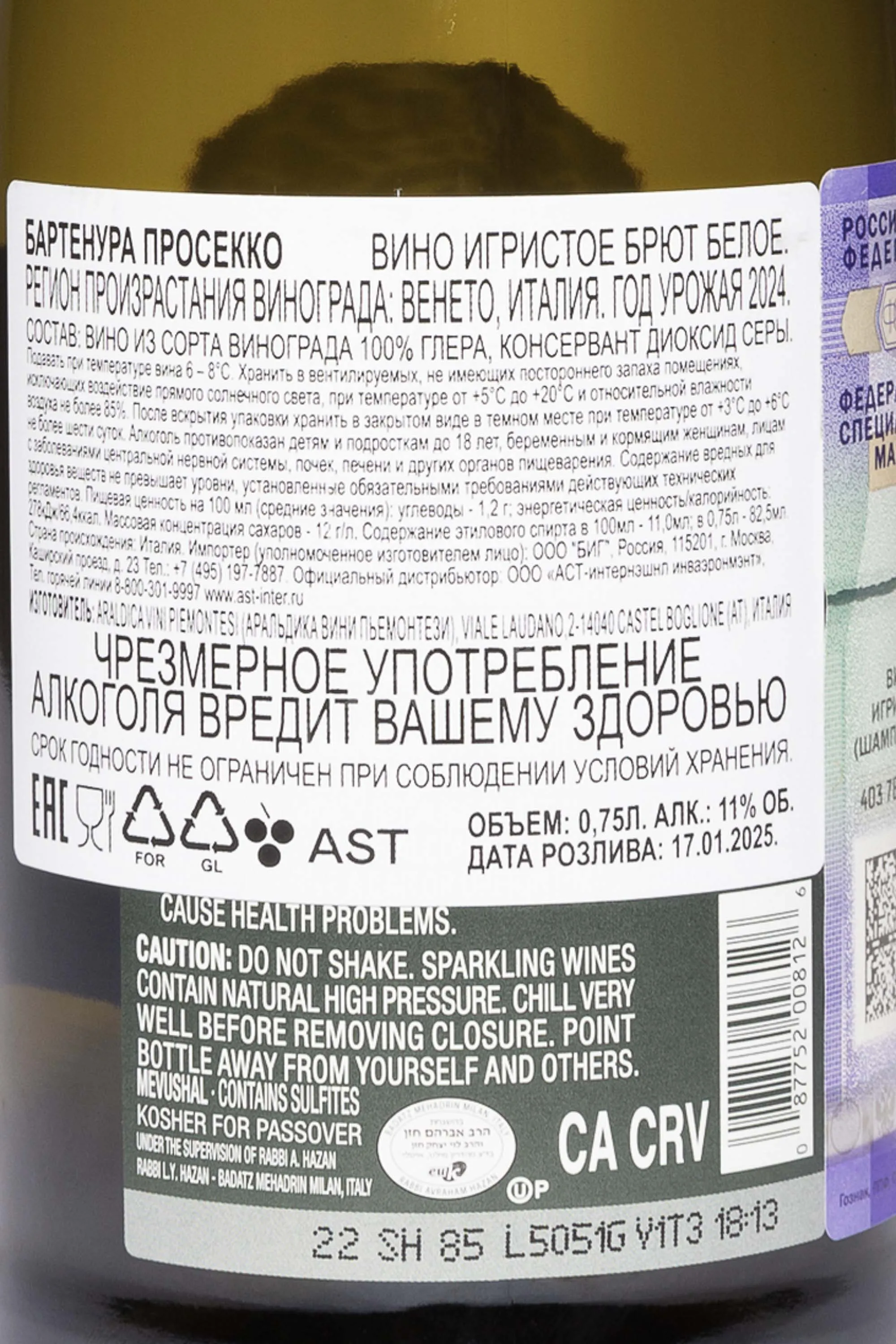 Игристое вино Bartenura Prosecco DOC 2024 года 0,75 л создано в классической итальянской традиции с акцентом на свежесть и элегантность. Виноград выращен на холмах Венето, где мягкий климат Адриатики и известняковые почвы придают ягодам яркую кислотность и фруктовый характер. 2024 год отличался ровной погодой без сильных дождей, что позволило собрать здоровые и ароматные грозди. Винификация осуществлялась по методу Шарма, при котором вторичное брожение проходит в герметичных резервуарах, сохраняя естественные ароматы и легкость вина. Оно выдерживалось короткое время, что дало возможность подчеркнуть свежесть и чистоту вкуса. Бартенура Просекко ДОК традиционно отличается стабильным качеством и узнаваемым стилем и в последние годы получает высокие оценки сомелье за сбалансированность и тонкую игру пузырьков.