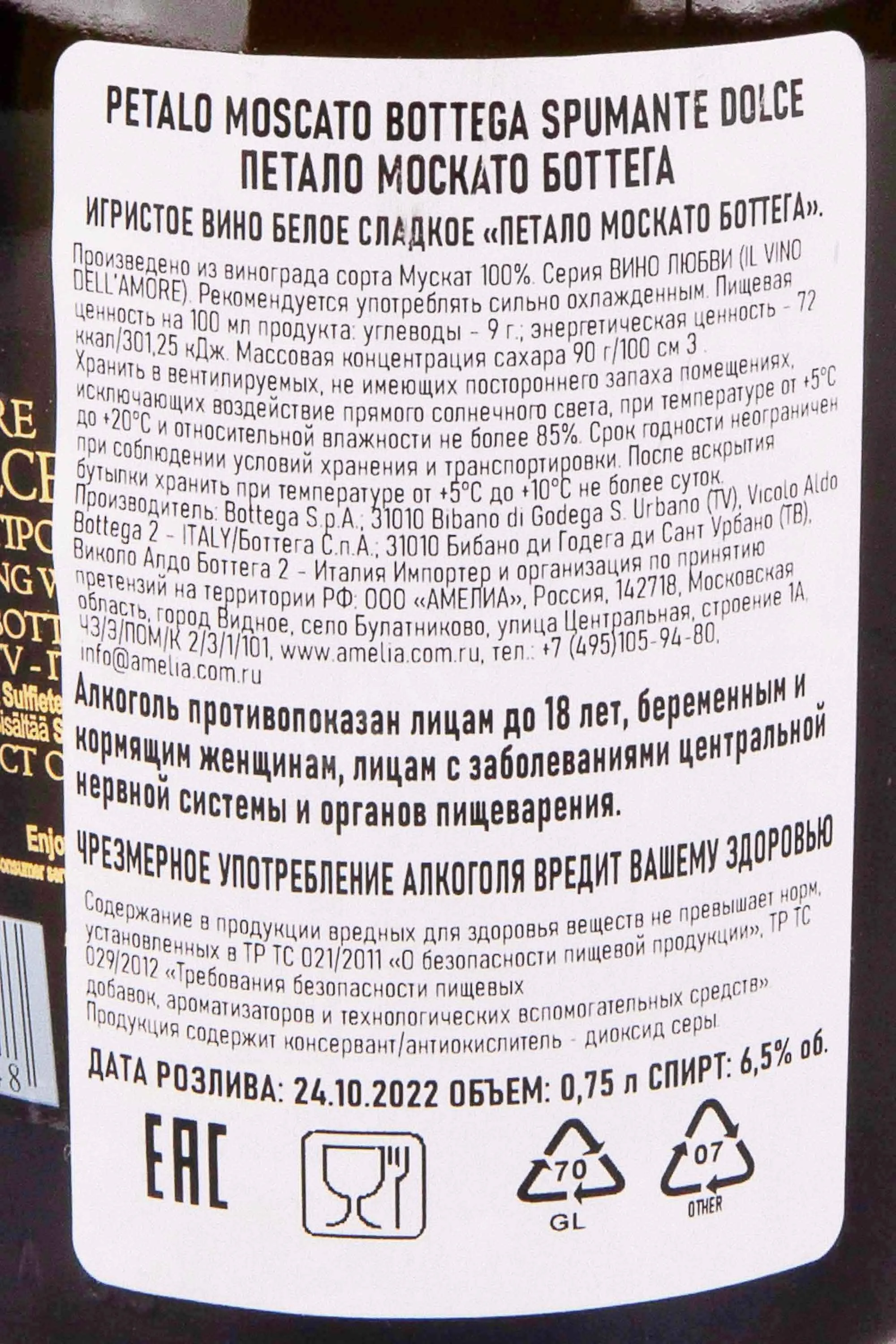 Bottega Petalo Moscato 0.75 л купить - Итальянское игристое вино Боттега Петало Москато цена в магазине КРЮ ПРОФИ г. Москва, ул. Профсоюзная, д. 16/10 10:00-22:00 Ежедневно +7 (495) 920-20-02 info@cru.ru
