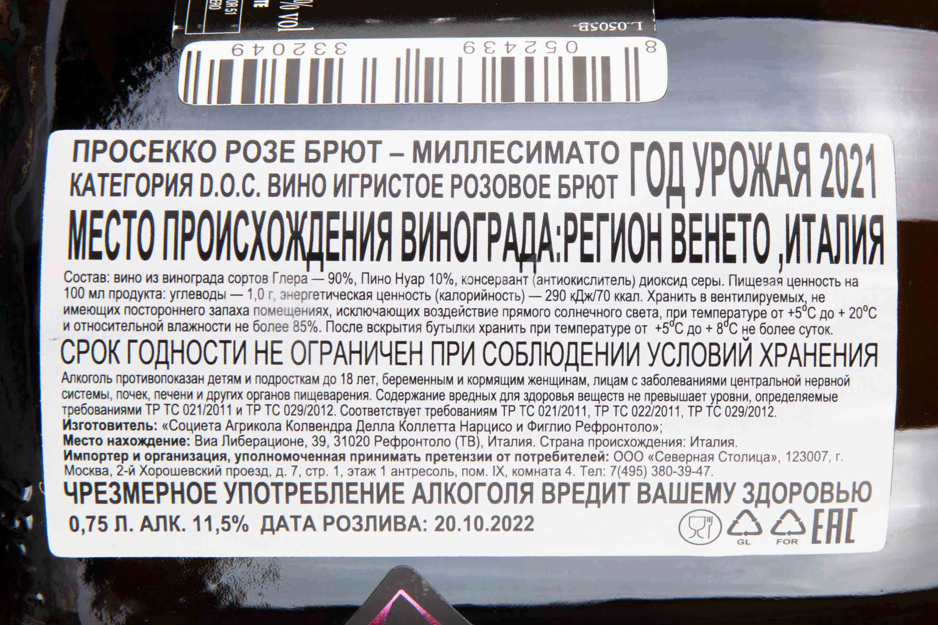 Колвендра Просекко Розе Брют Миллесимато ДОК 2021 0.75