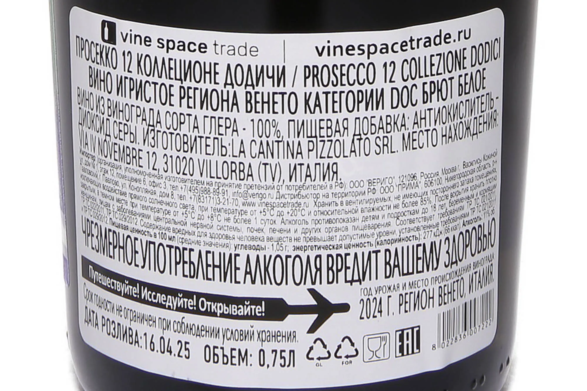 Игристое белое вино Dodici Prosecco 12 Collezione 2024 г. 0,75 л создано в регионе Тревизо, где виноградники занимают холмистые склоны с известковыми и глинистыми почвами. Местный терруар отличается мягким климатом: зимы прохладные, но без суровых морозов, а лето теплое с достаточным количеством осадков. В 2024 году сезон был стабильным, дожди пришлись на весну, а август принес солнечные дни, что обеспечило равномерное созревание ягод. Для производства применялся метод Шарма, при котором вторичная ферментация проходит в стальных танках под давлением. Этот способ позволил сохранить свежесть, тонкую фруктовую основу и характерные пузырьки, делающие напиток легким и ярким. Сбор урожая проводился вручную — были отобраны только целые и здоровые грозди. Винтаж создан небольшой партией, подчеркивающей коллекционный характер линейки 12 Collezione.
