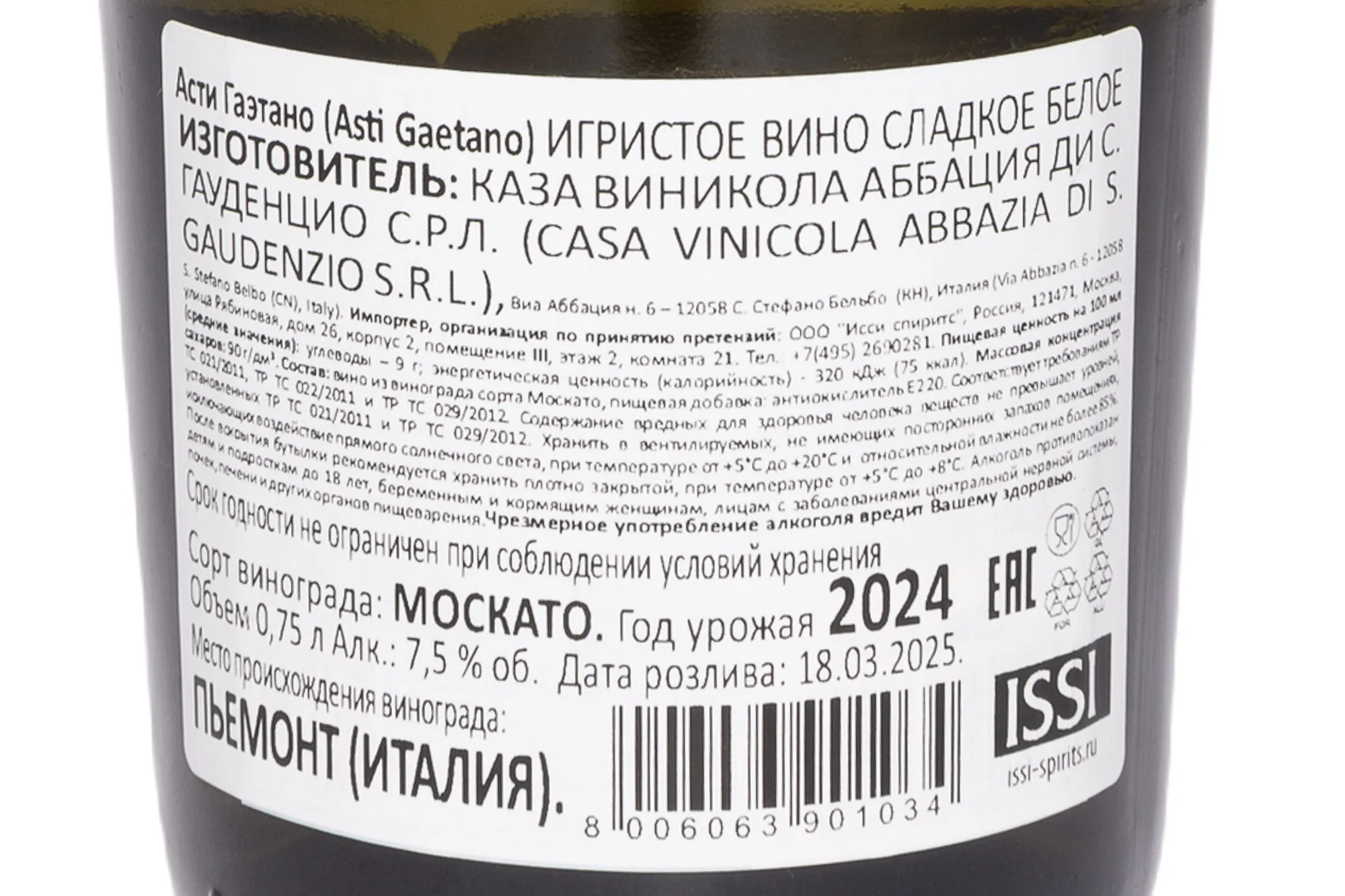 Gaetano Asti 2024 0.75 л купить - Итальянское игристое вино Гаэтано Асти цена в магазине КРЮ ПРОФИ г. Москва, ул. Профсоюзная, д. 16/10 10:00-22:00 Ежедневно +7 (495) 920-20-02 info@cru.ru