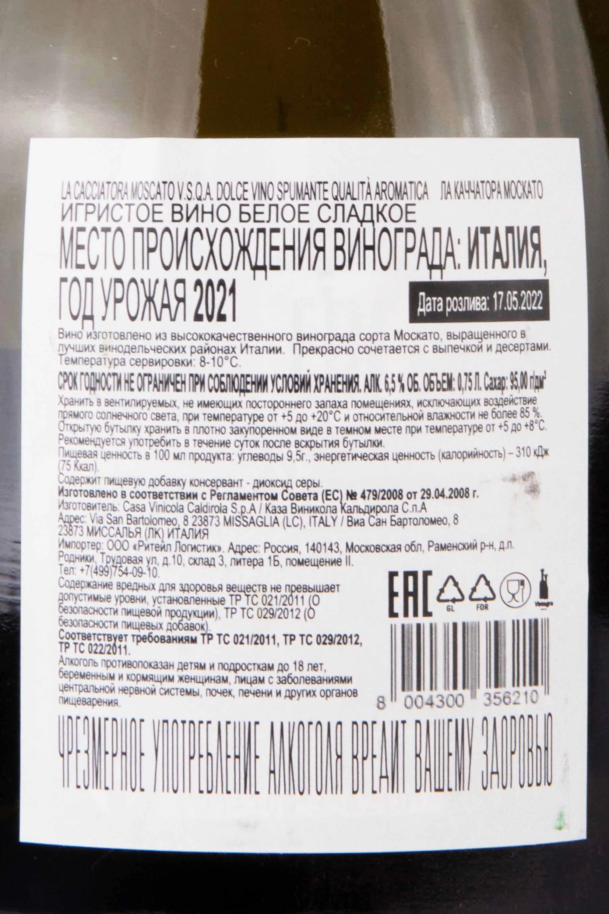 Изготовитель: Casa Vinicola Caldirola S.p.A