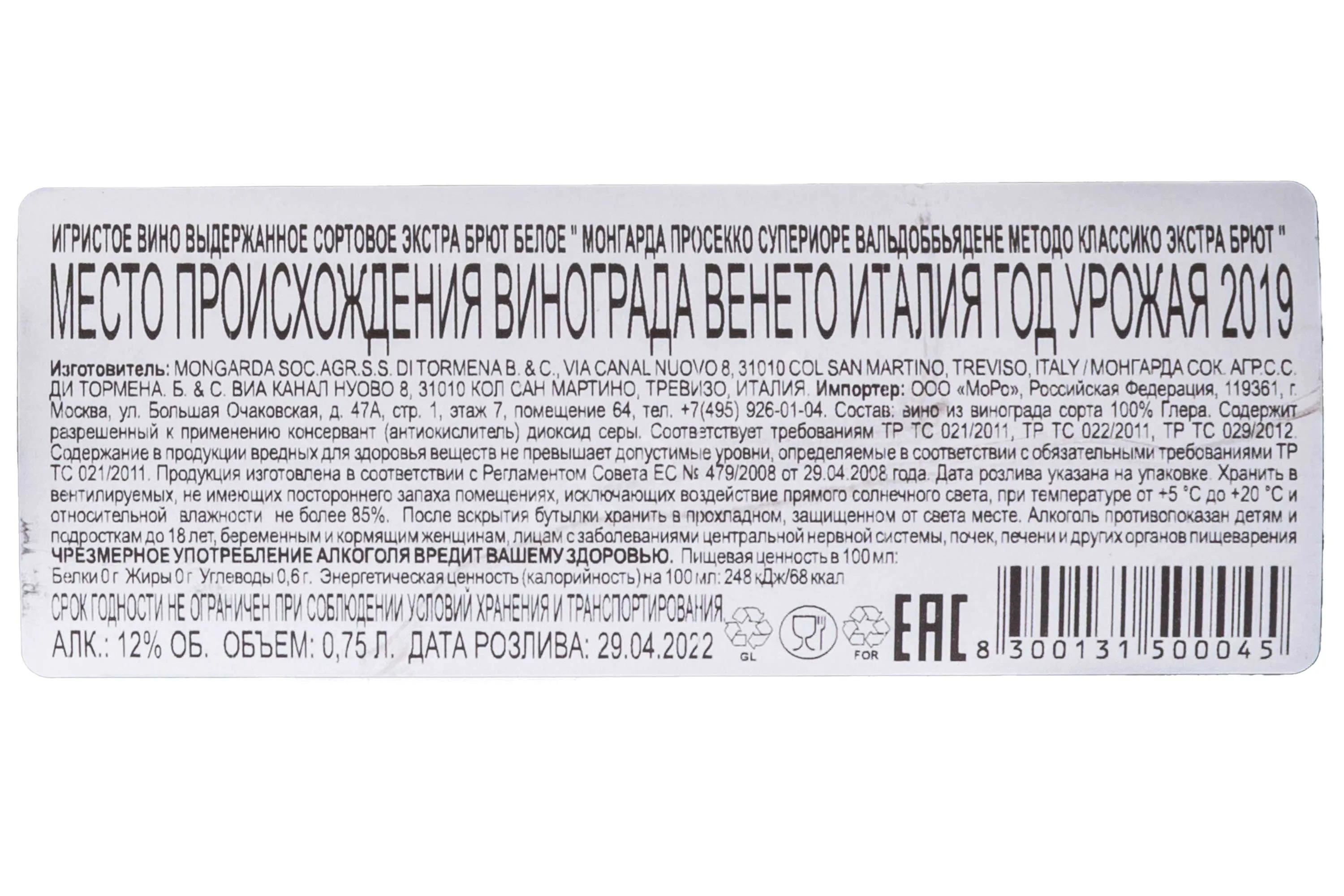 Mongarda Valdobbiadene Prosecco Superiore metodo classico Extra Brut 2019 0.75 л купить - Итальянское игристое вино Монгарда Просекко Супериоре Вальдоббьядене методо классико экстра брют цена в магазине КРЮ ПРОФИ г. Москва, ул. Профсоюзная, д. 16/10 10:00-22:00 Ежедневно +7 (495) 920-20-02 info@cru.ru
