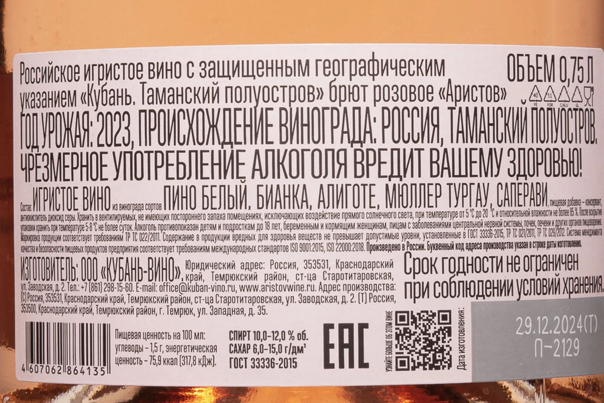 Аристов розовое брют 2023 0.75 л купить - Российское игристое вино Aristov pink brut цена игристого вина в магазине КРЮ ПРОФИ г. Москва, ул. Профсоюзная, д. 16/10 10:00-22:00 Ежедневно +7 (495) 920-20-02 info@cru.ru