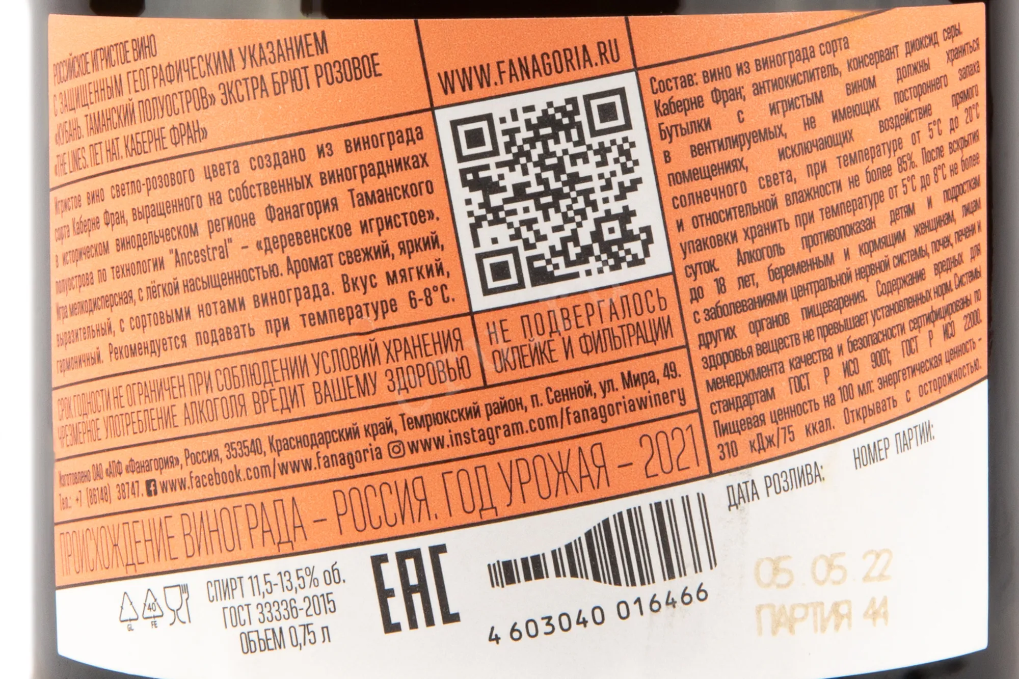 Фанагория Пет Нат Каберне Фран 2022 0.75 л купить - Российское игристое вино Fanagoria Pet Nat Cabernet Franc цена игристого вина в магазине КРЮ ПРОФИ г. Москва, ул. Профсоюзная, д. 16/10 10:00-22:00 Ежедневно +7 (495) 920-20-02 info@cru.ru