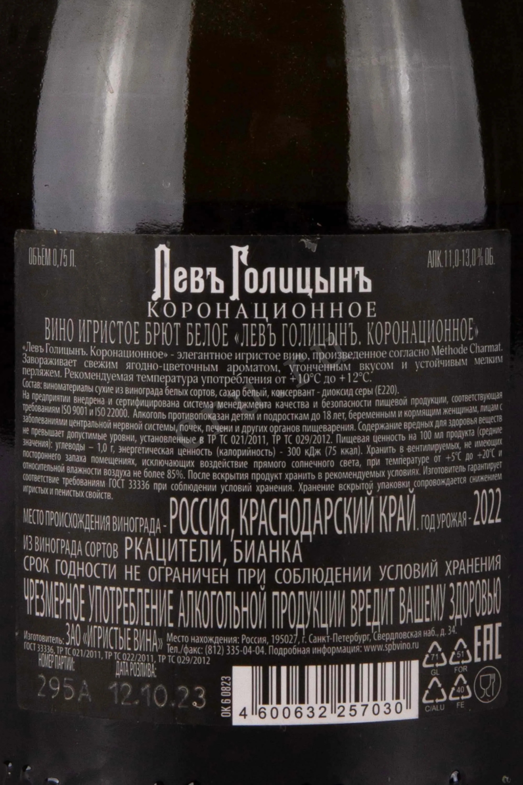 Игристое вино Левъ Голицынъ Коронационное Брют 2022 0.75 л