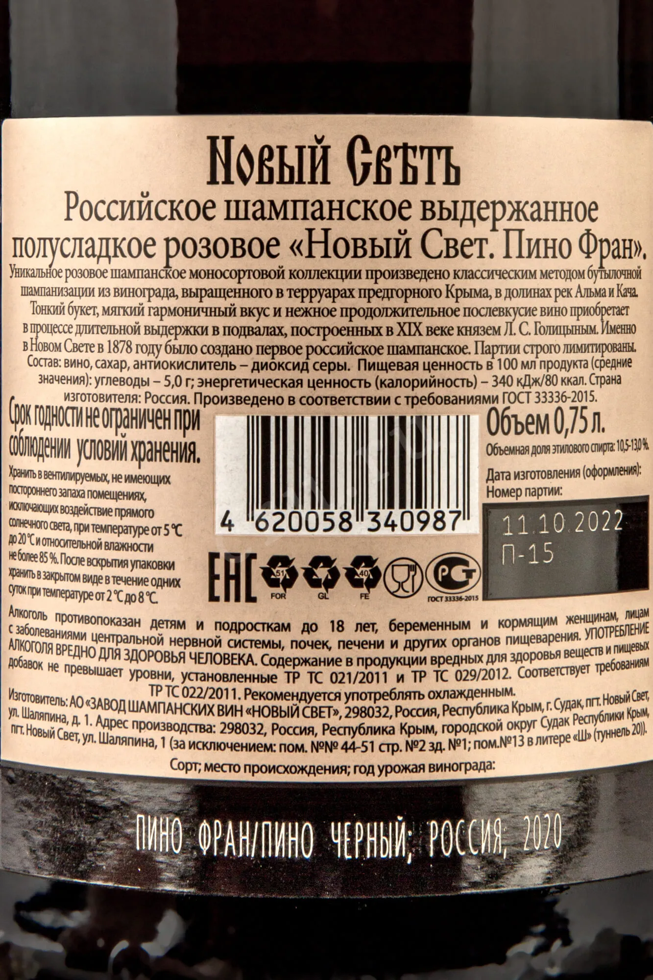 Новый Свет Пино Фран 2020 0.75 л купить - Российское игристое вино Novyi Svet Pinot Franc цена игристого вина в магазине КРЮ ПРОФИ г. Москва, ул. Профсоюзная, д. 16/10 10:00-22:00 Ежедневно +7 (495) 920-20-02 info@cru.ru