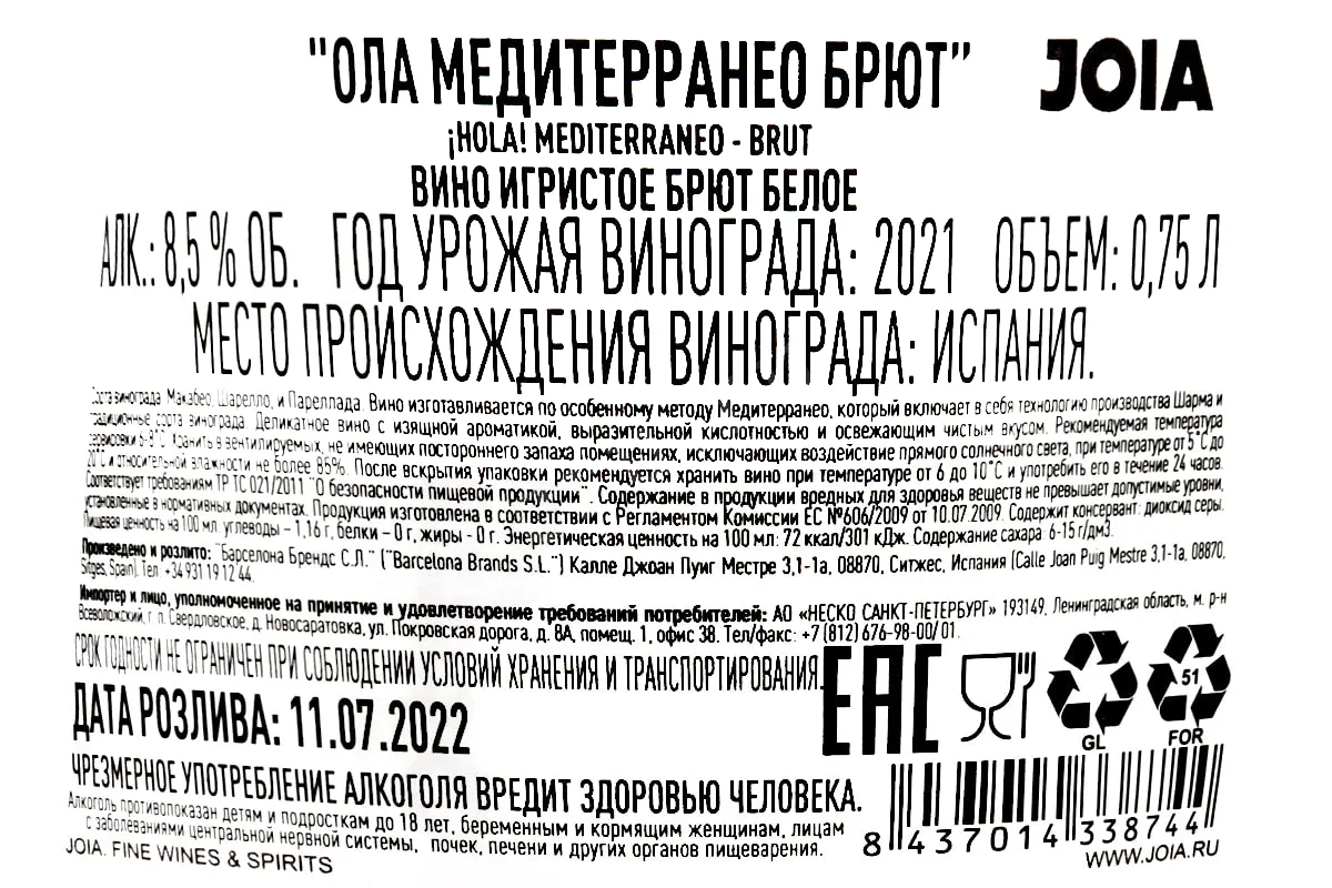 Белый сорт винограда родом из Испании. В основном используют для производства игристых вин.