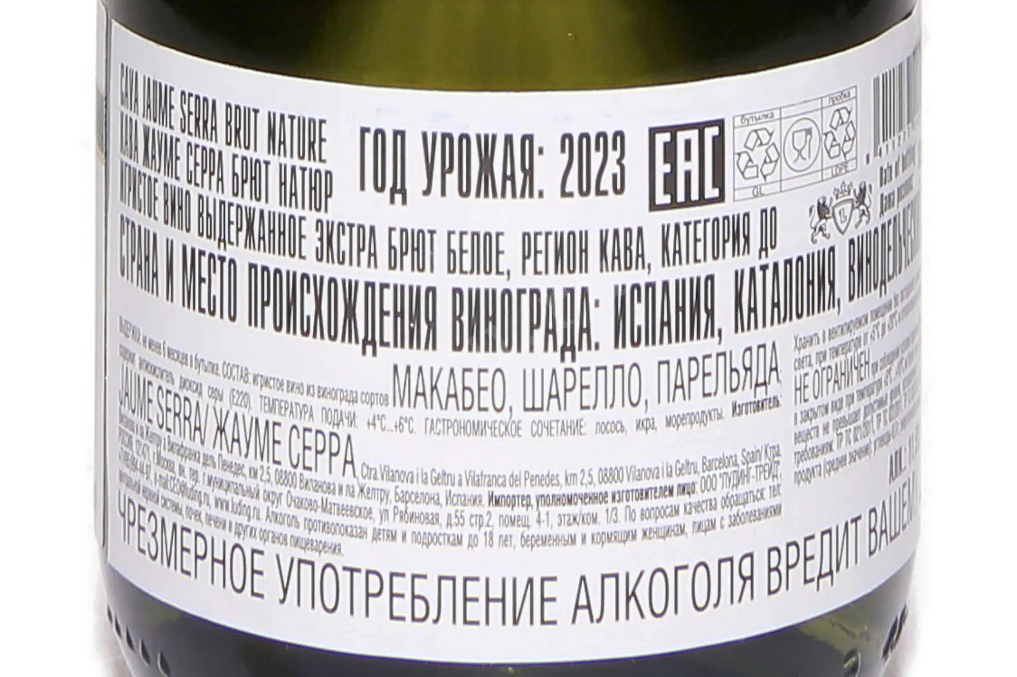 Игристое вино Jaume Serra Cava Brut Nature DO 2023 года 0,2 л создано в классическом стиле испанской кавы, с акцентом на свежесть и минеральность. Виноград был выращен в регионе Пенедес, где преобладают известняковые и глинистые почвы, а мягкий средиземноморский климат с солнечным летом и прохладными ночами делает урожай стабильным и сбалансированным. Год 2023 отличался ровной погодой без резких перепадов, что позволило собрать здоровый и спелый виноград. Производство проходило по традиционному методу с двойной ферментацией, вторая протекала в бутылке. Выдержка на осадке длилась несколько месяцев, что придало вину сложность и тонкий характер. Уникальность заключается в формате 0,2 л, который идеально подходит для дегустации на одного человека и знакомства с брендом.