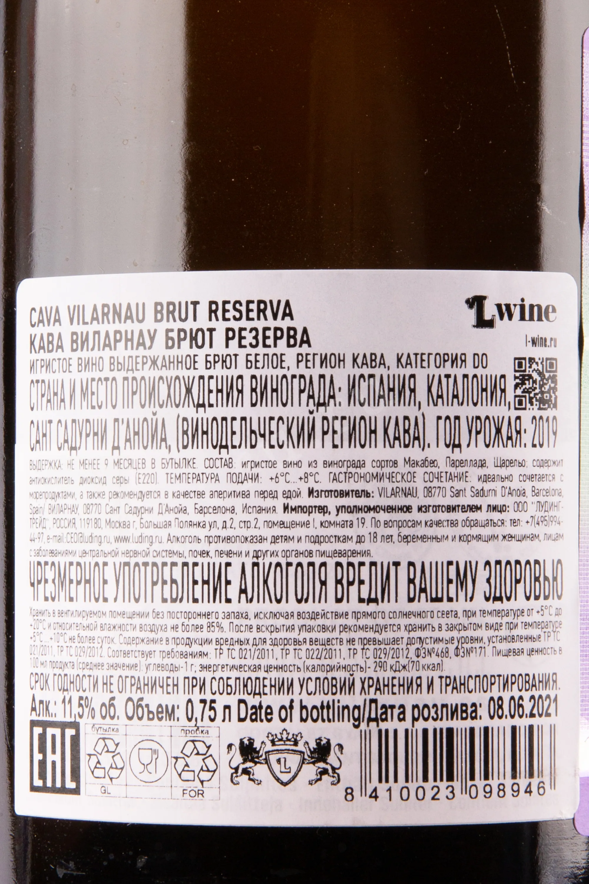 Vilarnau Brut Reserva Cava DO gift box 0.75 л купить - Испанское игристое вино Виларнау Брют Резерва Кава в подарочной упаковке цена в магазине КРЮ ПРОФИ г. Москва, ул. Профсоюзная, д. 16/10 10:00-22:00 Ежедневно +7 (495) 920-20-02 info@cru.ru