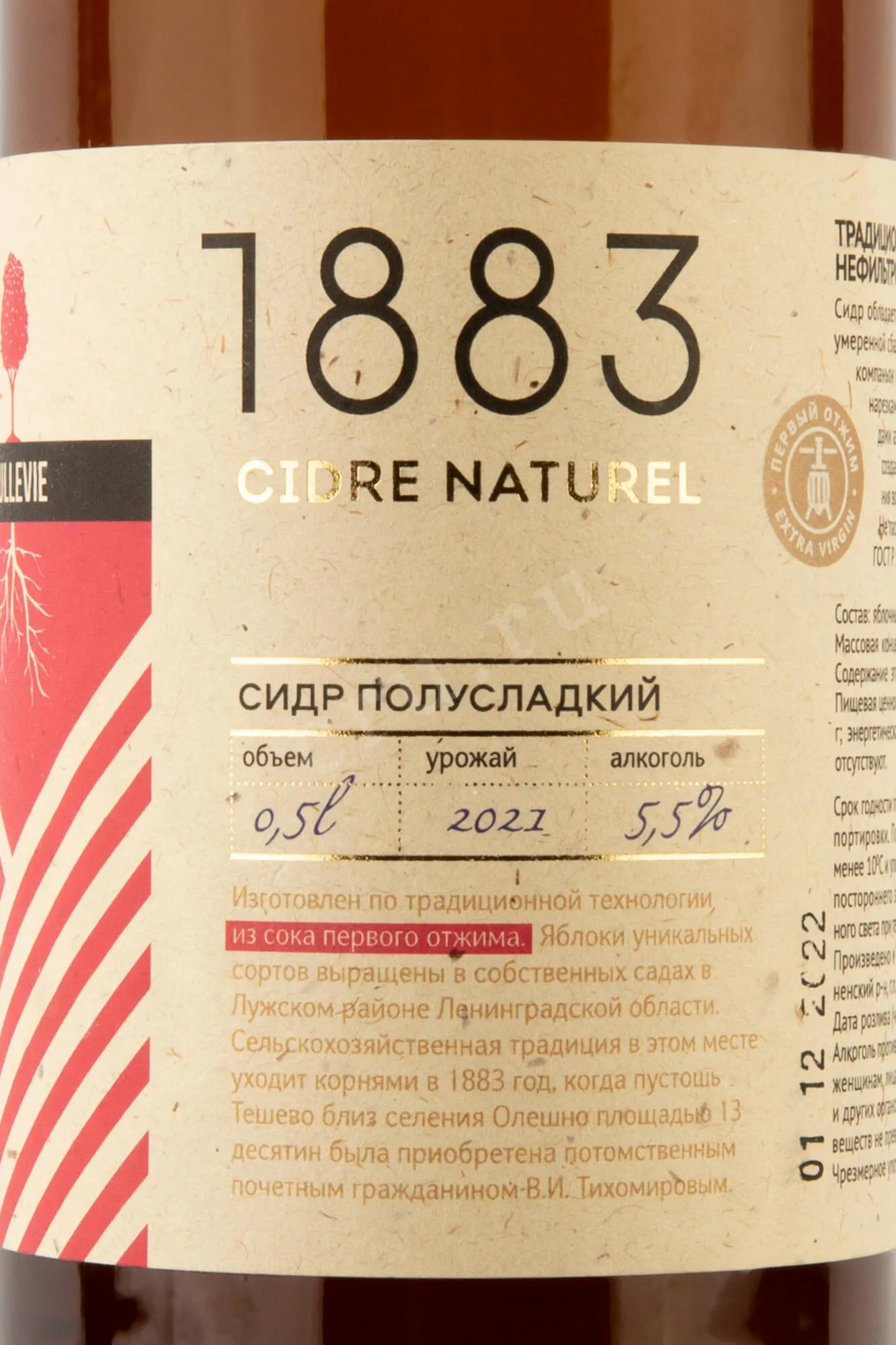 Сидр Bullevie 1883 Semi-sweet 0,5 л делают из яблочного сока прямого отжима. Сырье отбирают из собственных садов, где выращивают фрукты с разной органолептикой. Во время производства не используют ароматизаторы, плодовые концентраты и воду. Сброженный сок как минимум полгода выдерживают, а разливают – без фильтрации и пастеризации, чтобы сохранить естественный вкус и характер напитка.