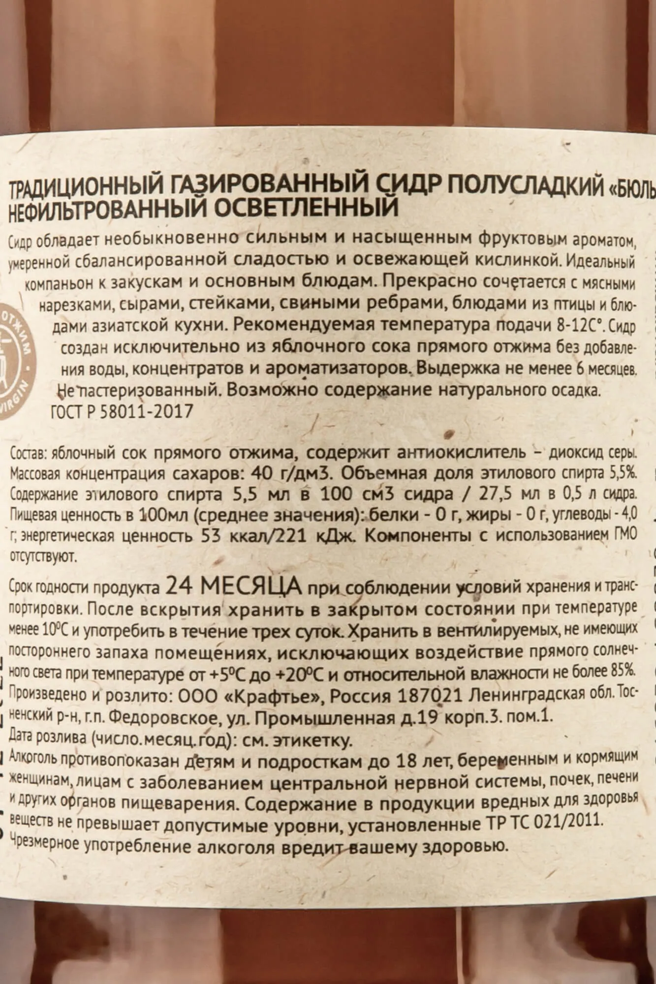 Вкус: с гармоничной сладостью, с легкой кислинкой и продолжительным яблочным послевкусием.