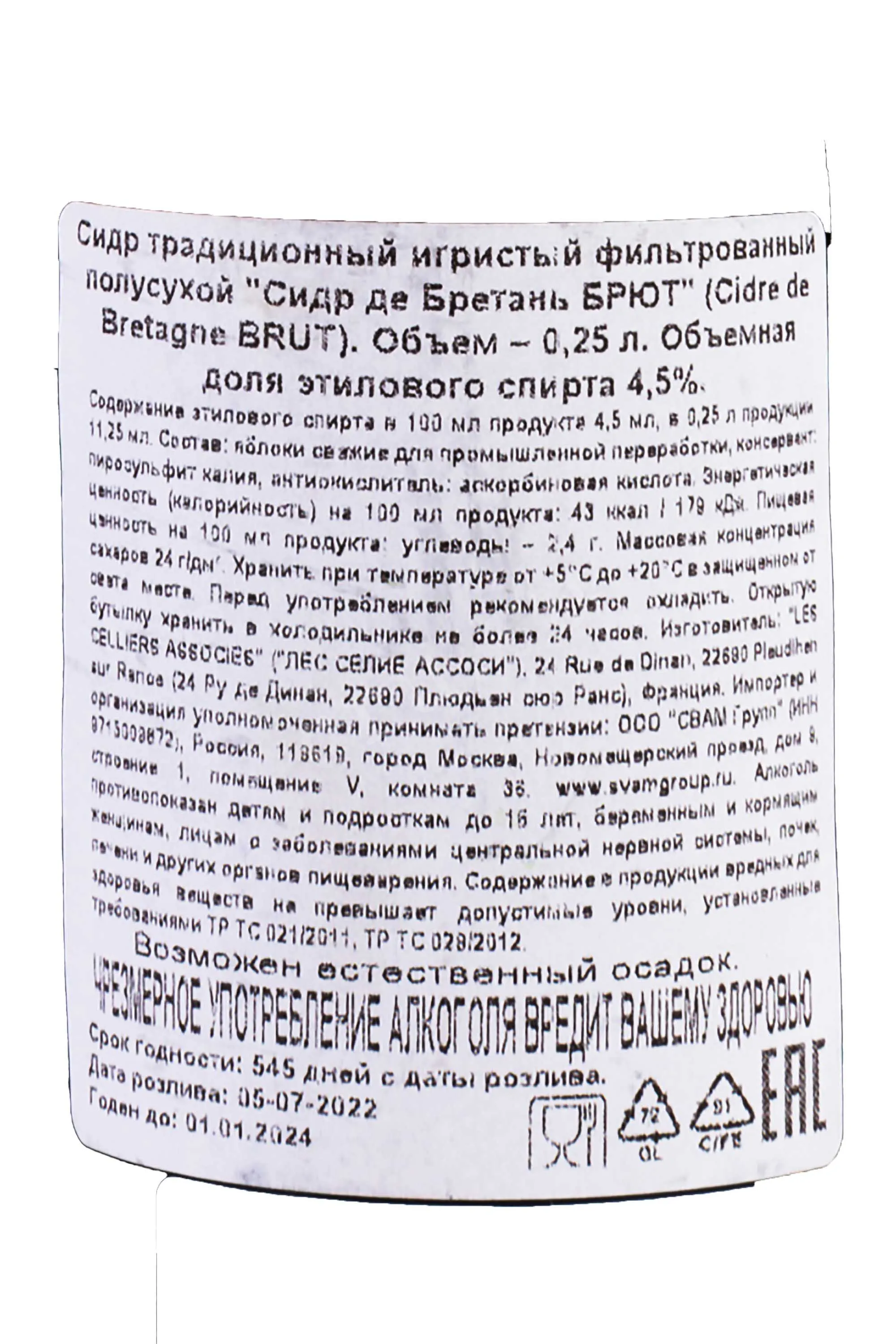 Cidre de Bretagne Brut 0.25 л купить - Сидр де Бретань Брют цена в магазине