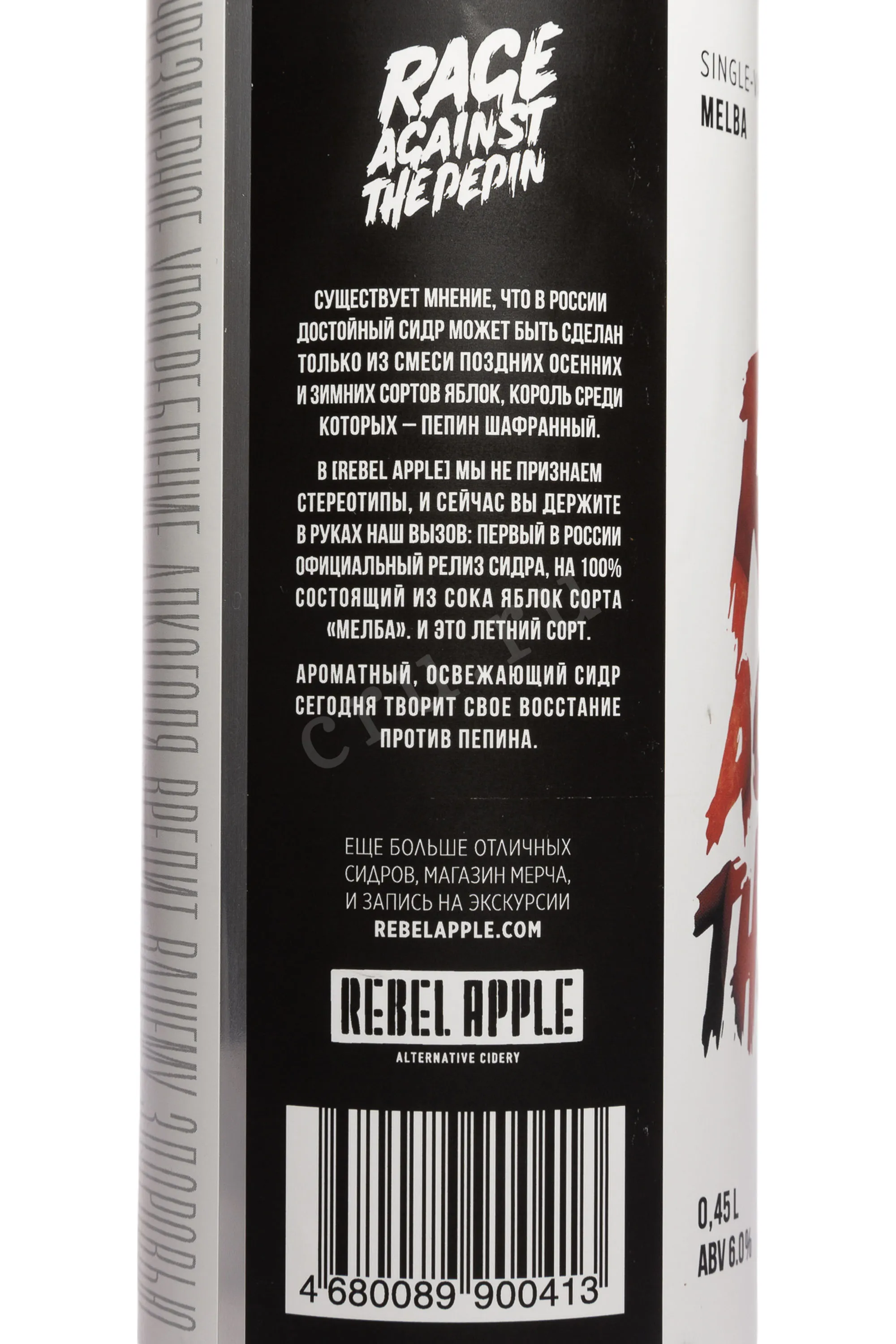 Rebel Apple Rage Against The Pepin — сортовой полусухой сидр, который полностью ломает привычные представления о том, каким должен быть сидр. Долгое время считалось, что качественный напиток можно получить только из поздних осенних и зимних сортов яблок, во главе с Пепином шафранным. Rebel Apple бросают вызов этому стереотипу: «Восстание Против Пепина» — первый официальный российский сидр, созданный на 100% из летнего сорта Мельба. Благодаря этому он обладает ярким ароматом, чистым вкусом и естественной освежающей кислотностью. Это смелый, ароматный и живой сидр, который доказывает: летние яблоки тоже способны создавать насыщенные и выразительные напитки. Подходит как для повседневного наслаждения, так и для вечеров в компании друзей, добавляя лёгкость и сочность каждому моменту.