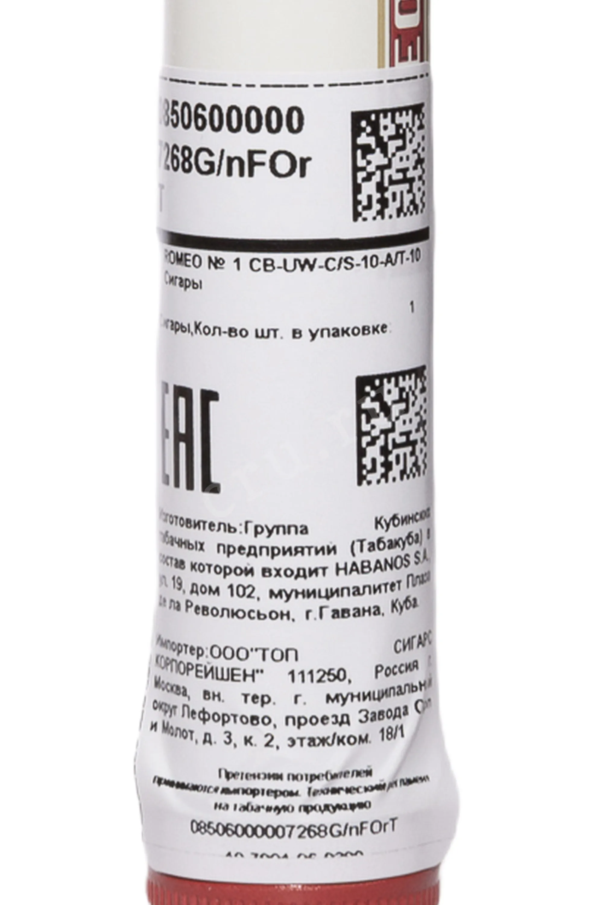 Сигара Romeo y Julieta Romeo № 1 в тубах 10 штук создана из 100 % кубинского табака региона Vuelta Abajo, где находятся одни из лучших плантаций в мире.