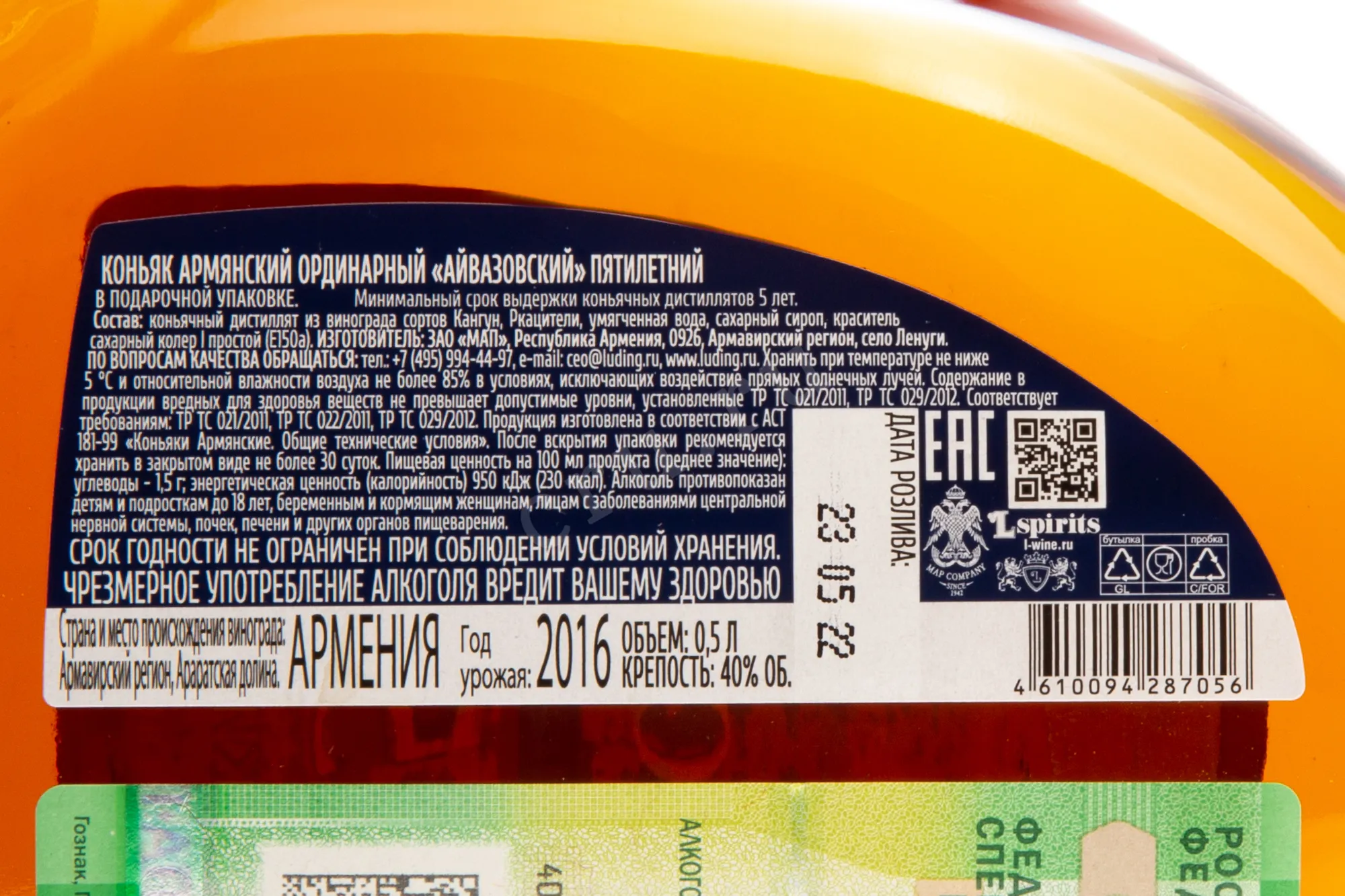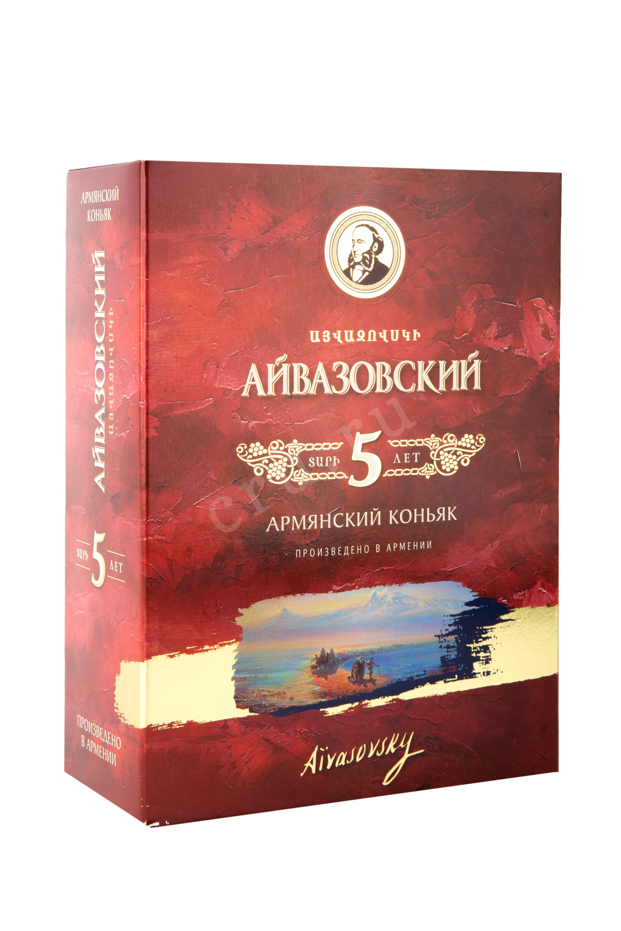 Коньяк Айвазовский 5 лет 0,5 л в п/у – превосходный образец армянского крепкого спиртного. Он изготовлен в традиционном стиле и обладает глубоким и выразительным вкусоароматическим профилем. На создание напитка пошли плоды белых сортов, выращенные в Араратской долине, которая находится в Армавирском районе. Сделанное из ягод сухое вина дистиллировали и оставили созревать в дубе на протяжении пяти лет. Бутылка в сувенирном оформлении подойдет на роль интересного подарка по особому поводу.