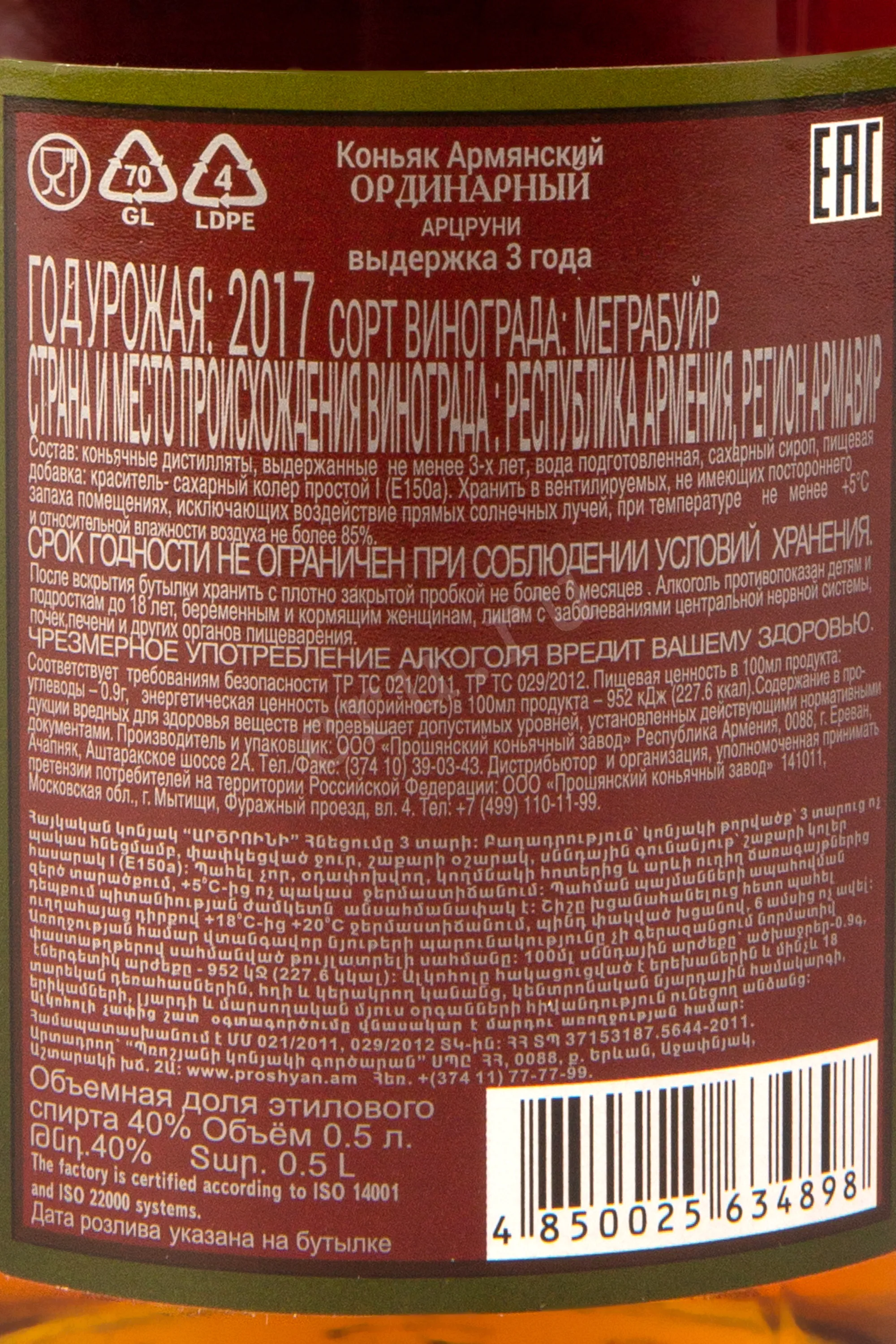 Коньяк Арцруни 3 года 0,5 л в тубе послужит сувениром, который можно вручить в честь праздника. Он предлагается в комплекте с презентабельным боксом, благодаря чему может украсить полку домашнего бара. На производство напитка пошли дистилляты, созданные из спелого армянского винограда. На протяжении трех лет спирты созревали в дубовых бочках, что придало им богатый и насыщенный профиль.