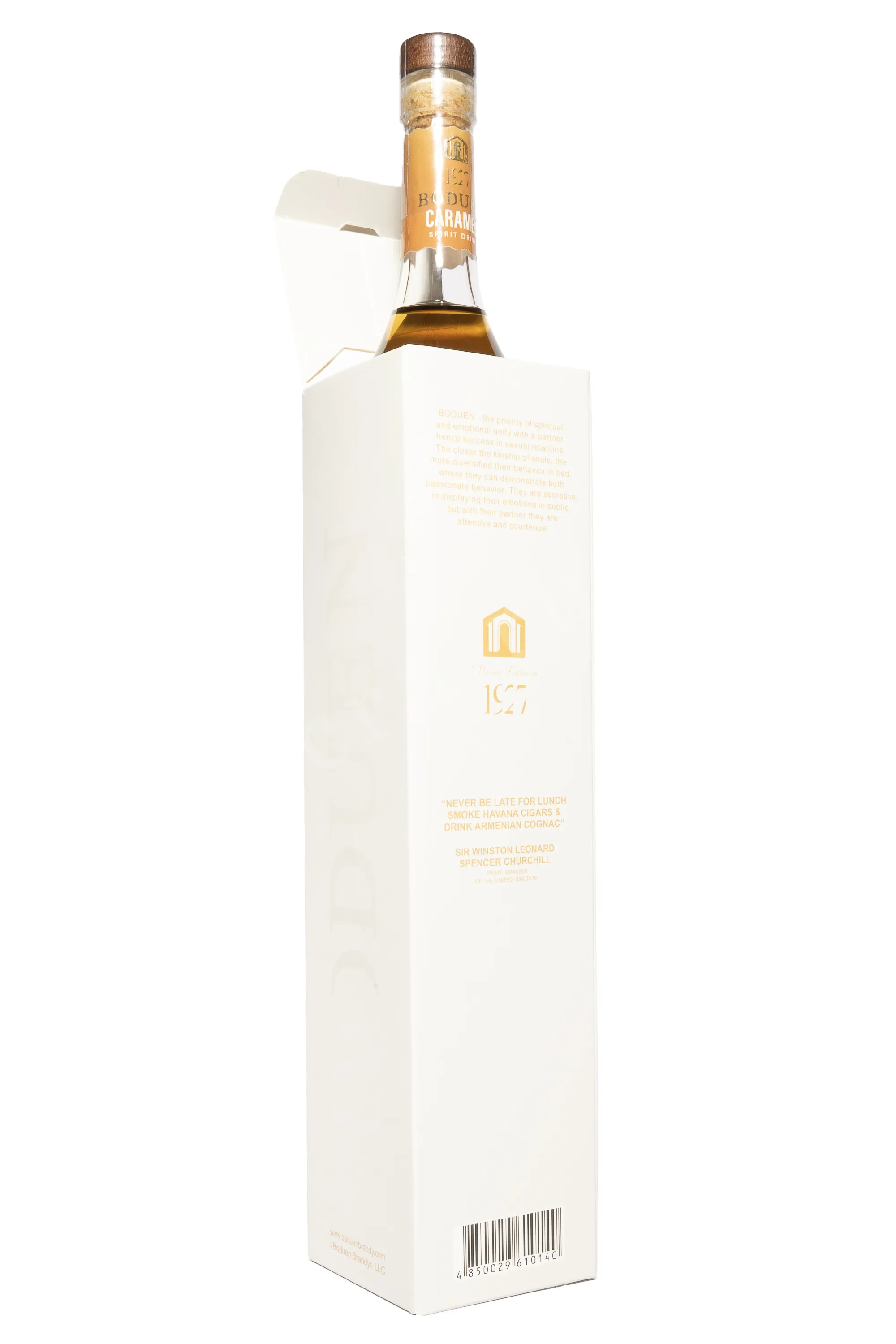 Коньяк Boduen Caramel 5 лет в подарочной упаковке 2017 0.5 л создан в мягкой и современно оформленной стилистике, где классическая винокуренная база сочетается с карамельным акцентом. Напиток изготовлен из винограда сортов Ркацители и Кангун. Используется выдержанная пятилетняя основа, которая проходит контроль качества и короткое купажирование перед добавлением натурального аромата карамели. Такой подход делает вкус более выразительным, но сохраняет структуру традиционного коньяка. Спиртной напиток отмечен стабильными потребительскими отзывами, которые подчеркивают баланс аромата и мягкую текстуру. Подарочная упаковка делает бутылку подходящим вариантом для праздничного презента.