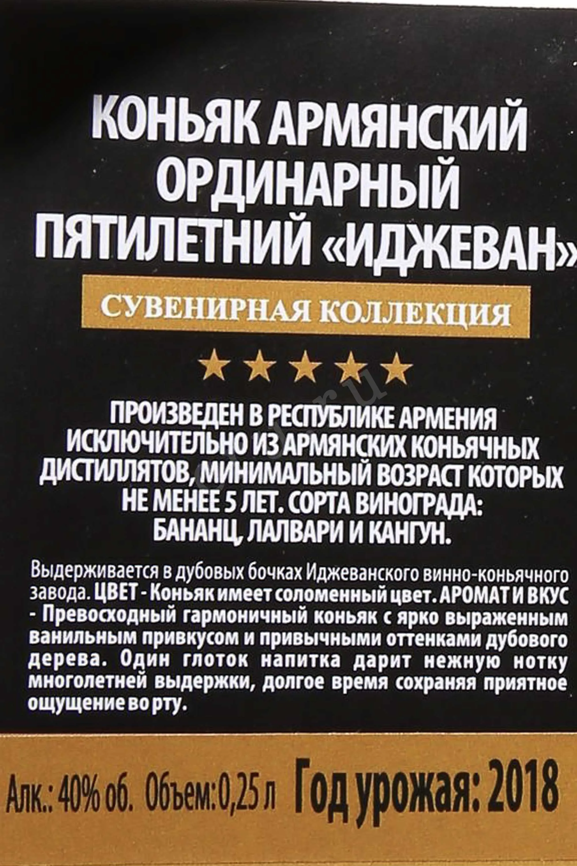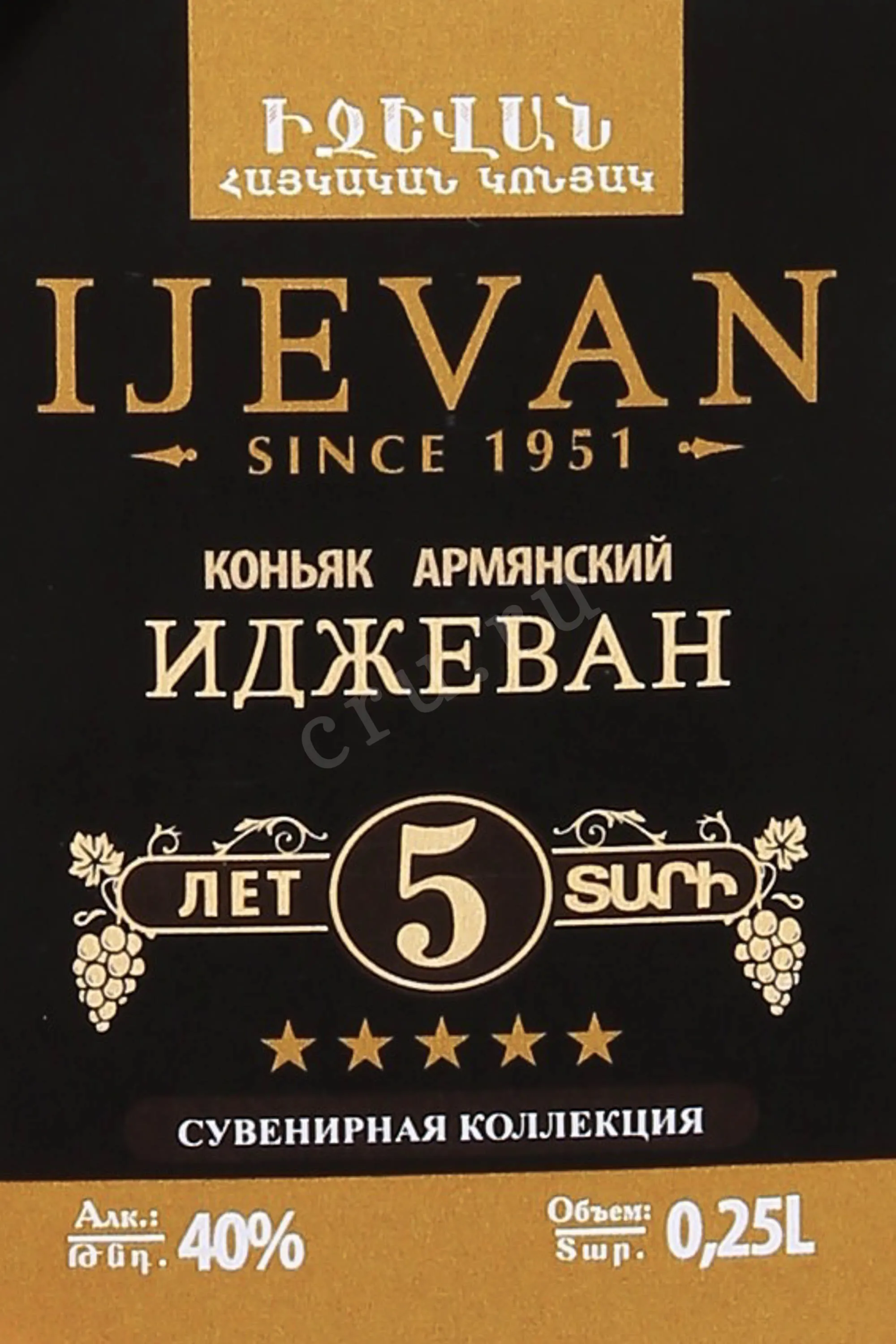 Коньяк Иджеван 5 летний Сувенирная Коллекция 0,25 л создан на основе традиций армянского коньячного производства. Для него используют отборные виноградные спирты, которые выдерживаются в дубовых бочках не менее пяти лет. Малый формат бутылки и декоративное оформление делают его частью сувенирной серии, что подчеркивает уникальность напитка. Такой вариант подходит как подарок и как дегустационная версия. Напиток отмечен на конкурсах за гармоничный вкус и сохраняет верность стилю бренда, где ценится баланс аромата и мягкости.