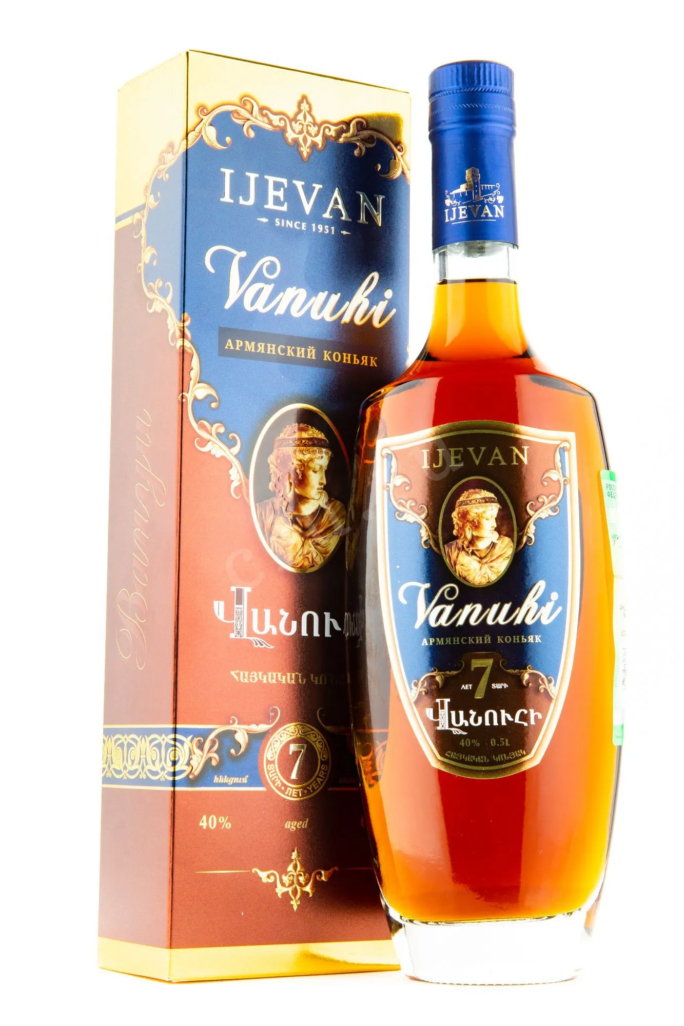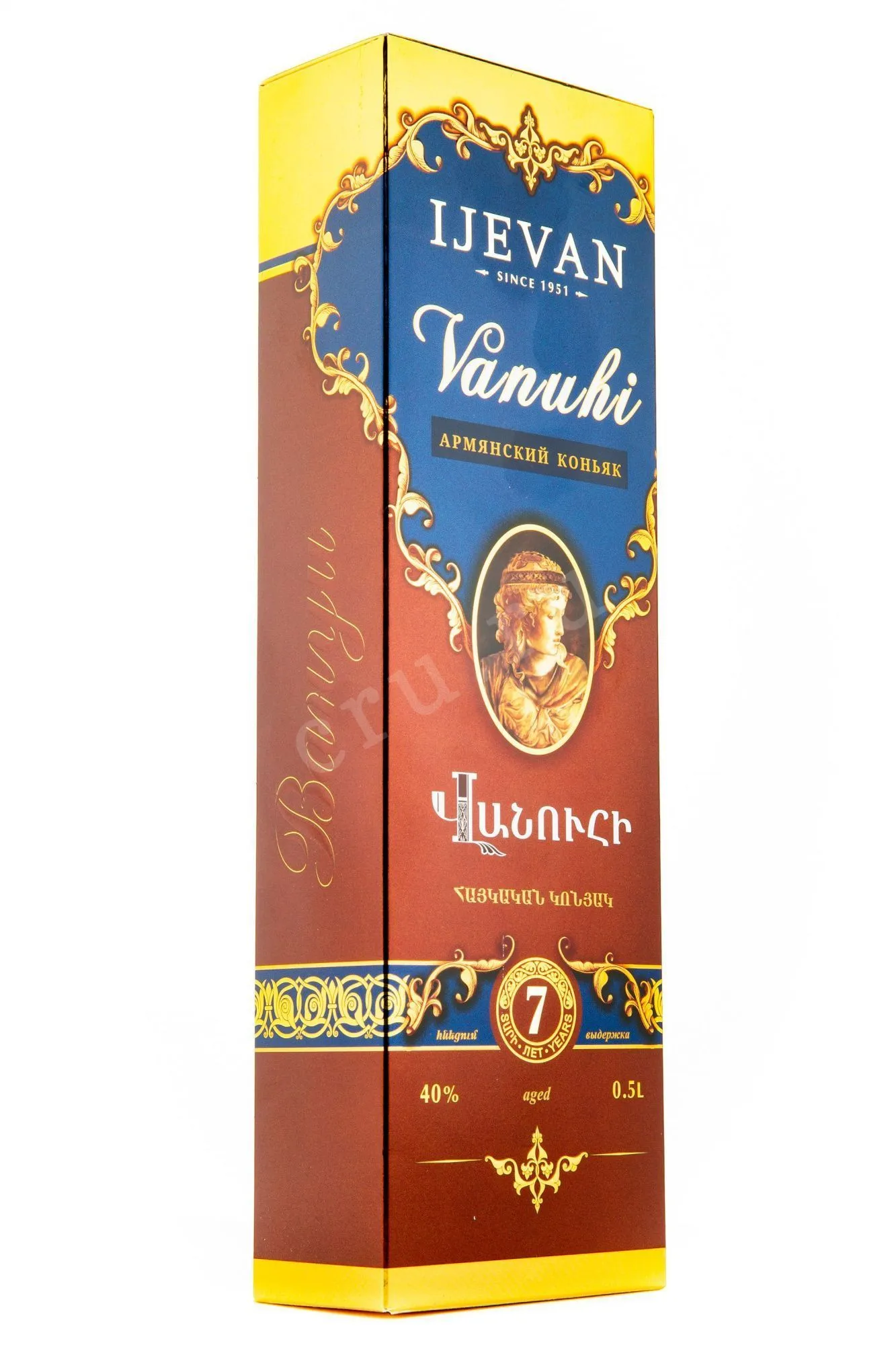 Коньяк Иджеван Вануи 7 лет 0.5 л – роскошный, элегантный бренди, выдержанный в столетних дубовых бочках не менее 7лет. Вануи — женское армянское имя, происходящее от исторического города Ван. Выпускается в яркой подарочной упаковке и будет великолепным подарком для любимой женщины.