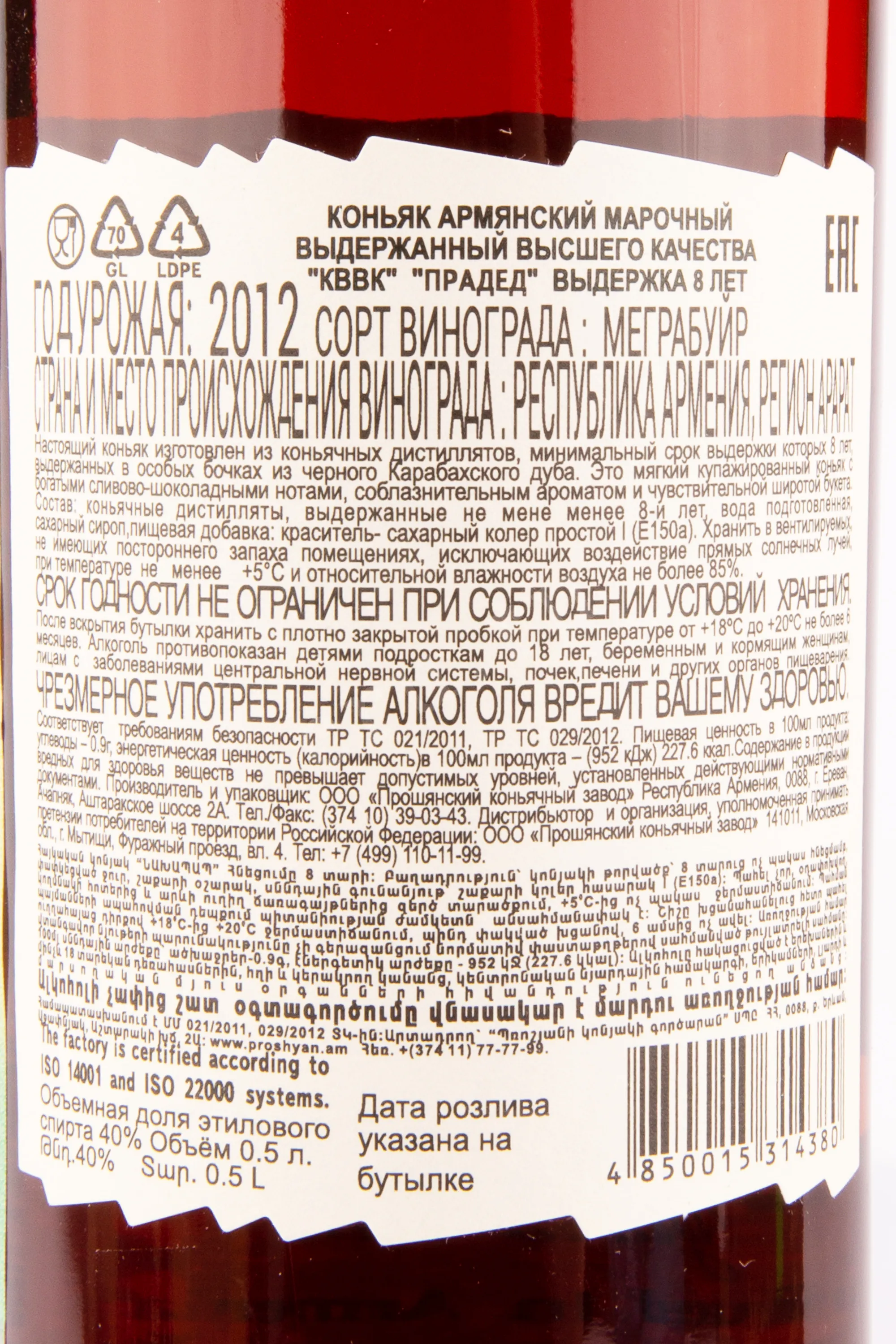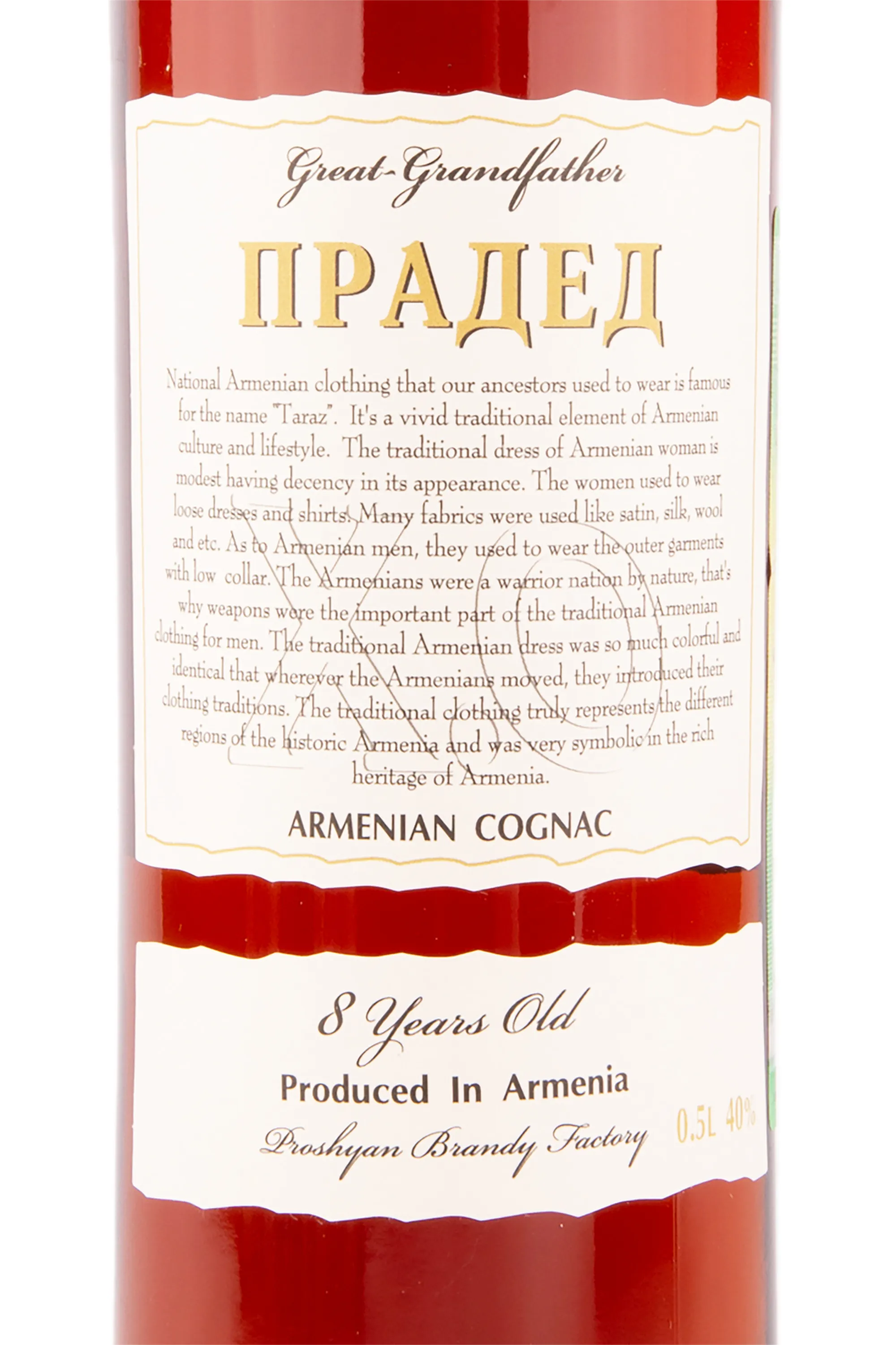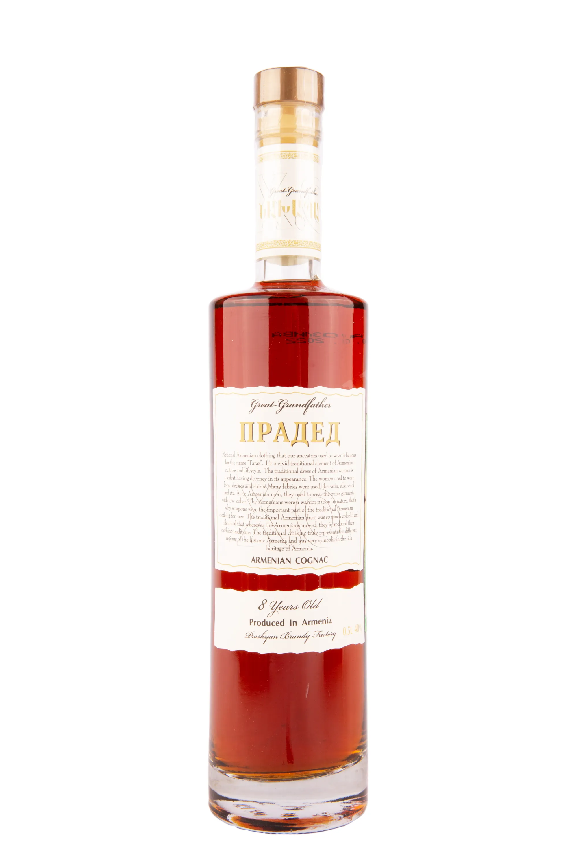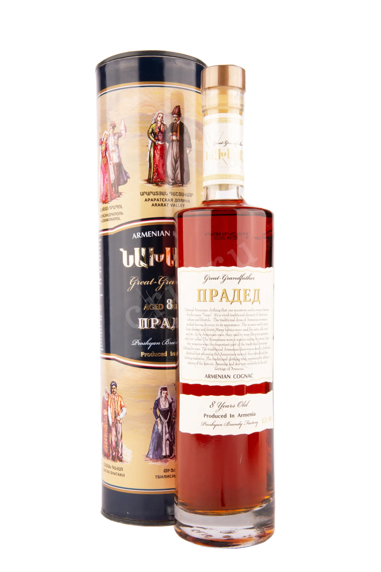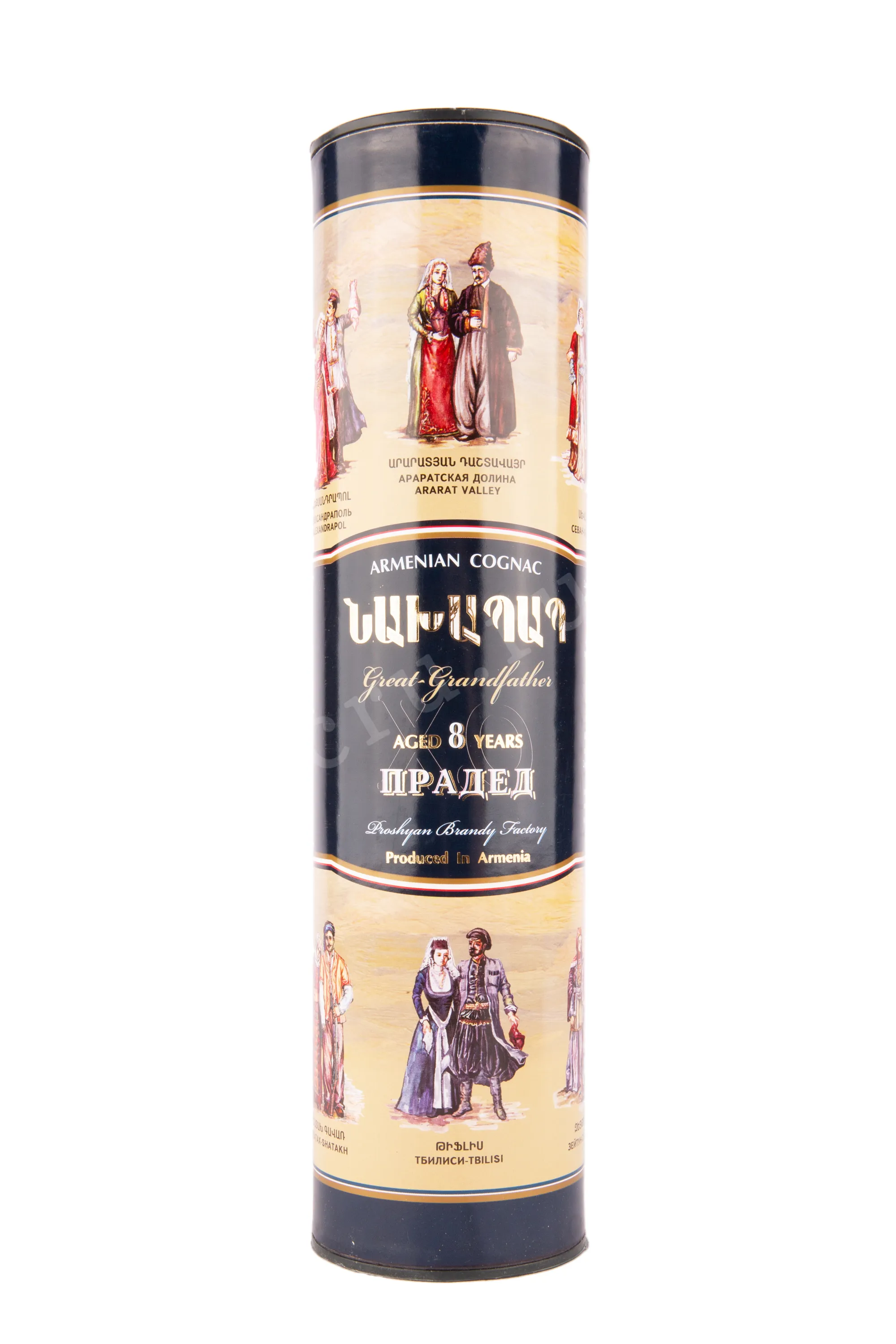 Коньяк Praded XO 8 Years Old in tube 0.5 l – это восьмилетний алкоголь от армянского производителя, созданный из винограда одного сорта урожая 2012 года. Старение спиртов протекало в барриках из черного карабахского дуба. 40-процентный напиток выпускается в подарочной тубе с изображением людей в старинных армянских костюмах.
